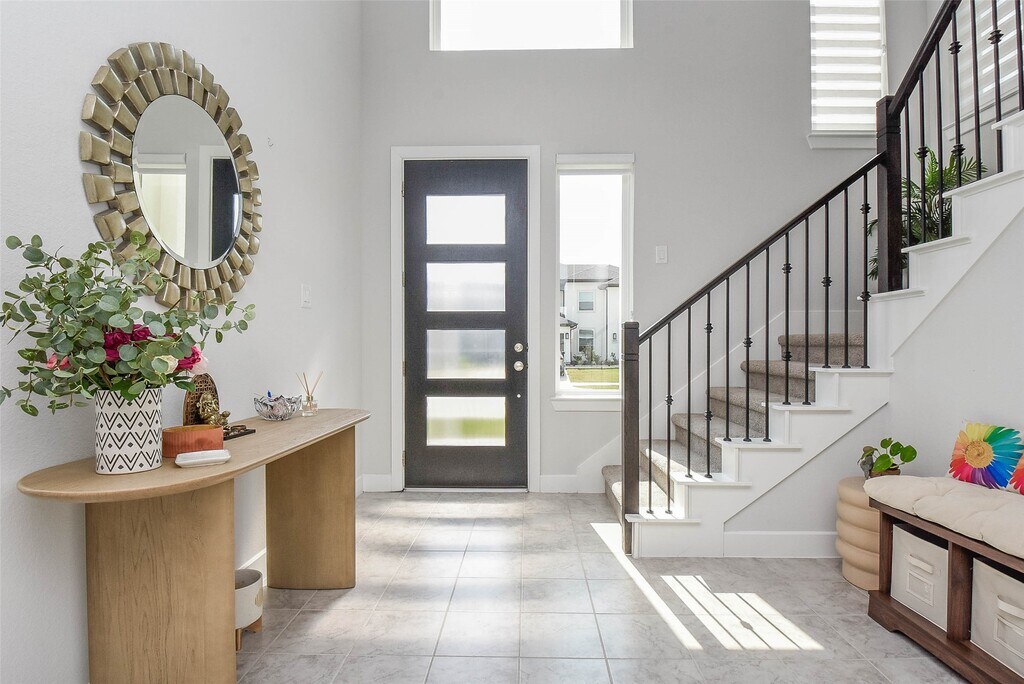 With its contemporary façade and exquisitely designed living spaces,this floor plan offers an inviting residence. The two-story home begins with a grand foyer,characterized by its impressive high ceilings and a conveniently located guest suite at the front,complete with a full bath. Progressing through the foyer,one is welcomed into a spacious family room,all elegantly framed by expansive windows that offer views of the serene outdoor retreat. The kitchen boasts an island and a walk-in pantry,while the adjacent casual dining room opens to a covered outdoor living area. The owner's suite,situated at the rear of the home,serves as a tranquil sanctuary. It includes an expansive walk-in closet. The first floor is further enhanced by a media room and a study. The second floor features a generous loft-style game room,accompanied by three bedrooms and two full baths. Perfect for those seeking a refined and inviting residence. MLS# 62013338