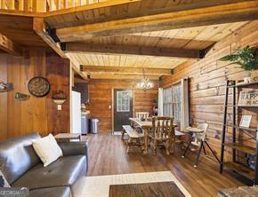 Escape to a charming North Georgia retreat just 15 minutes from Helen, GA! This spacious 4-bedroom, 3-bathroom home comes fully furnished and is packed with amenities for both everyday comfort and weekend getaways. Inside, enjoy a chef's kitchen with high-end appliances, ample cabinetry, and generous countertop space, perfect for cooking and entertaining. The open-concept living area features vaulted ceilings, large windows, and a cozy leather sofa facing a 65 Smart TV with an electric insert inside the wood stove, creating the perfect spot to gather and relax. Each bedroom is thoughtfully designed with Smart TVs and workspaces. The main and upper-level bedrooms feature king-sized beds, while the lower-level bedrooms each have two twin beds. Additional sleeping options include a loft daybed with trundle and a basement bonus room futon. Entertainment abounds with a loft offering arcade games, board games, and a playpen for little ones, plus a basement bonus room with foosball, corn hole, and chess. Outside to enjoy a fire pit, BBQ grill, and outdoor dining space, perfect for meals under the stars. This dog-friendly home also offers high-speed fiber internet, ample parking, and security with a smart video doorbell and exterior cameras. Well water and garbage collection are included; tenants cover electricity costs. Whether exploring Helen's shops, wineries, and outdoor adventures or relaxing in your private haven, this home balances comfort, fun, and convenience." MLS ID 10729385