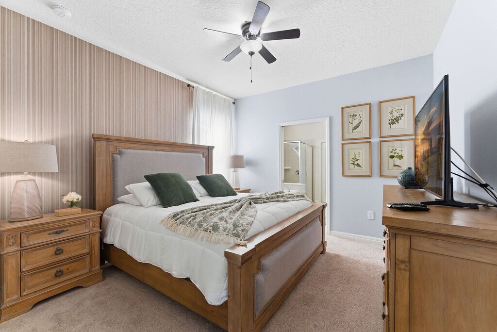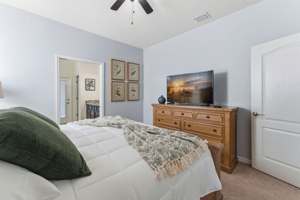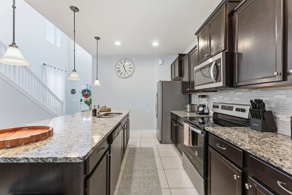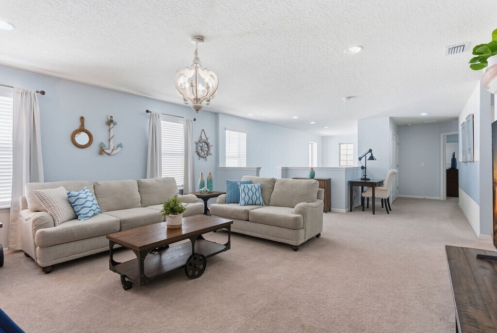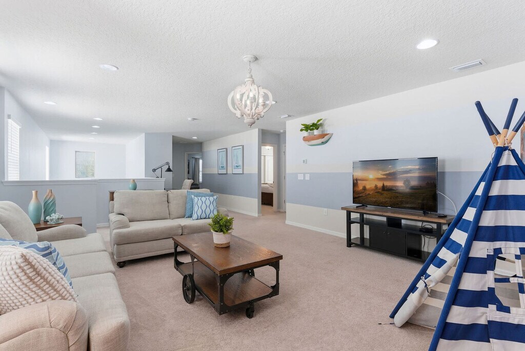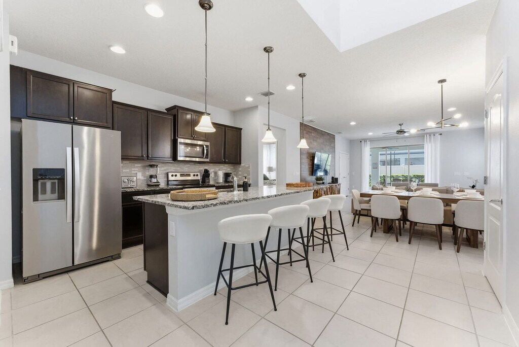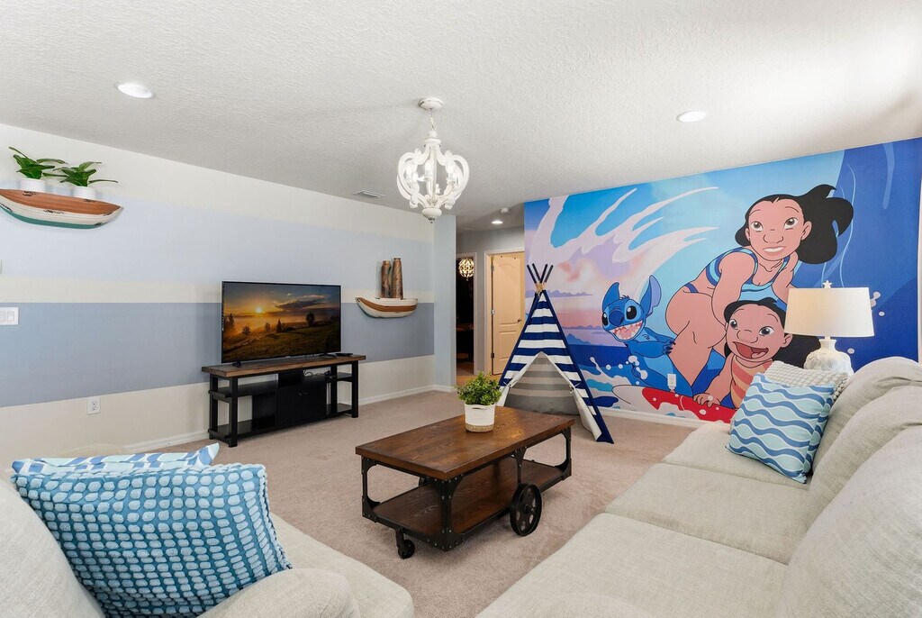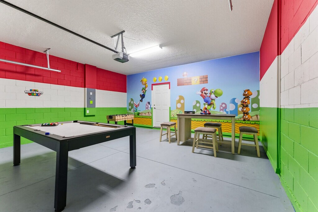 Feel at home in this spacious 6-bedroom home at Windsor Westside, perfect for families seeking comfort, space, and fun. This home features an open-concept layout with a beautifully decorated living area, a fully equipped kitchen, and a large dining space. Entertainment options include a Mario Bros–themed game room and a Moana-inspired family room. The three themed bedrooms — Mickey, Frozen, and Avengers — add charm and creativity. For your convenience, the home includes an in-home laundry room, free Wi-Fi, and a welcome kit with basic bathroom and kitchen supplies. Optional pool heating and BBQ grill services are available for an additional fee. Located in Windsor Westside Resort, this home is minutes away from Walt Disney World and other attractions. Enjoy resort-style living with access to a community pool, lazy river, fitness center, and sports courts. Explore theme parks, shopping outlets, golf courses, and dining options nearby. Quiet hours are between 10:00 PM and 8:00 AM. [SI]
