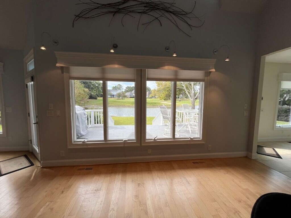 Welcome to this exceptional 3-bedroom, 3.5-bathroom home offering elevated coastal living in one of Wilmington’s most beautiful communities. Thoughtfully designed with comfort and elegance in mind, this property showcases vaulted ceilings, recessed lighting, ceiling fans throughout, and expansive windows that fill the home with natural light. The gourmet kitchen will delight any chef, featuring a gas stove, wine cooler, and ample counter space. The luxurious master suite includes spacious walk-in closets and a spa-inspired bath with a walk-in shower. Perfect for both work and relaxation, the home offers a wired workshop for hobbyists and DIY enthusiasts, along with a peaceful sunroom ideal for morning coffee or quiet reading. Enjoy views and fresh breezes from the charming covered front porch or unwind with friends on the outdoor furniture overlooking the pristine landscape. Situated on a golf course and waterfront, this property provides stunning views and unmatched access to outdoor recreation. Additional features include a two-car garage, built-in shelving, blinds/shades throughout, and thoughtful details that enhance everyday living. This home effortlessly blends luxury, comfort, and an unbeatable location—truly a must-see!