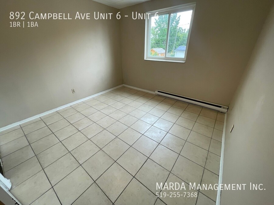 ** 1/2 MONTH FREE RENT IF SIGNED BY JAN 1, 2026! ** Explore the contemporary comfort of this 1-bedroom, 1-bathroom unit at 892 Campbell in Windsor, perfect for those seeking a stylish and spacious living environment. This updated unit offers an open concept layout and modern finishes, ideal for anyone looking for a sleek, move-in-ready home. Key Features: Open Concept Living: Enjoy a spacious, open floor plan that combines the living, dining, and kitchen areas into one seamless space, perfect for modern living. Modern Tile Flooring: Beautiful tile flooring throughout the unit adds a touch of elegance and is easy to maintain. Updated Kitchen and Bathroom: Both the kitchen and bathroom are updated with contemporary fixtures and fittings. Shared Laundry: Convenient access to shared laundry facilities within the building, enhancing your living convenience. Parking: This includes access to shared lot parking, ensuring you always have a place to park. Located in Windsor, this unit is in a fantastic area with great access to local amenities. Whether you're a professional or a small family, 892 Campbell offers a comfortable and convenient lifestyle. Tenants are responsible for hydro. First and last months rent and a credit check are required. Professionally managed by MARDA Management, offering 24/7 maintenance support and easy, stress-free rent payment options. Call MARDA MANAGEMENT today at or email to schedule your viewing! Additional Media: Cable Hookup Ready Coin Operated Laundry Laminate Flooring New Countertop Installed No Smoking Allowed Pet Friendly