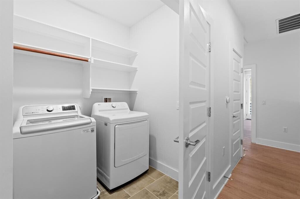 Light and bright, modern 3 bed 2.5 bath townhome. Gated access and attached 1 car garage. Stained concrete downstairs and vinyl floors up - no carpet! Quartz counters in the kitchen and bath. Spacious island kitchen with Italian tile to the ceiling, stainless venthood, gas range, side by side fridge with icemaker. Washer and dryer included. Highly efficient tankless hot water. Gas and trash included in HOA dues (paid by owner). Surround sound downstairs and in the Primary suite. Vaulted ceilings in the primary with French doors and Juliet balcony. Fenced yard. Master bath features glass shower with rainshower head and separate soaking tub with huge walk-in closet. All landscaping maintained by HOA. Fenced community dog park. Garrison Park, HEB, Alamo Drafthouse movie theater, Whole Foods, Costco all less than 10 minutes. Pets negotiable and will require a non-refundable pet cleaning fee as part of deposit. MLS ID 2092529