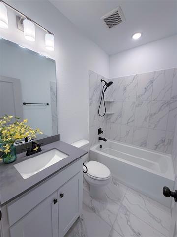 Welcome to this beautifully maintained 2-bedroom townhome with a private study and 2.5 bathrooms, located in the highly desirable Grove Frisco community. This home features a bright, open-concept layout with contemporary finishes and abundant natural light throughout. The chef-inspired kitchen is both stylish and functional, featuring a large island, granite countertops, stainless steel appliances, a gas cooktop, and custom cabinetry with convenient pot-and-pan drawers. Whether entertaining guests or enjoying a quiet evening at home, this space is designed to impress. Upstairs, a spacious study can easily serve as a third bedroom. The private primary suite offers a relaxing retreat with an oversized shower, walk-in closet, and additional linen storage. A secondary bedroom is thoughtfully located nearby and shares a full bathroom, making it ideal for family members or guests. Additional highlights include smart home features and a low-maintenance lifestyle with landscaping included. Step outside to take advantage of the extensive amenities offered by this master-planned community, including a clubhouse, fitness center, multiple pools, four playgrounds, and scenic walking trails. A two-car garage adds everyday convenience. Located within the top-rated Frisco ISD and close to parks, schools, and shopping, this home perfectly blends comfort, community, and convenience.