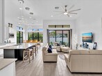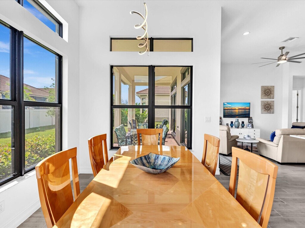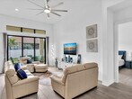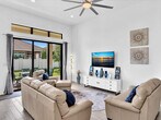 Great Scott! Vera Extra Suite model. Resort style living. 2607sq ft on a 70'x125' lot w/rear privacy wall. 3BR & 3.5BA open floorplan. Private entry suite w/bedroom,living room,walk-in closet & laundry,perfect for college kids,parents & guests. The flex room serves as an office/study. Upgraded washer & dryer & laundry sink w/cabinets. Gorgeous main living,dining & kitchen area w/upgraded appliances & large island. Master bedroom w/sitting area. Master bath has dual vanities with separate shower & tub,walk-in closet. Plank style porcelain tile throughout. Impact windows & doors. Monitored alarm system. Window treatments & 5 wall mounted TVs included. 24hr guard gate. resort style pool,hot tub,separate lap pool,tennis & pickleball courts,fitness center. Property also listed for sale MLS ID B26015185