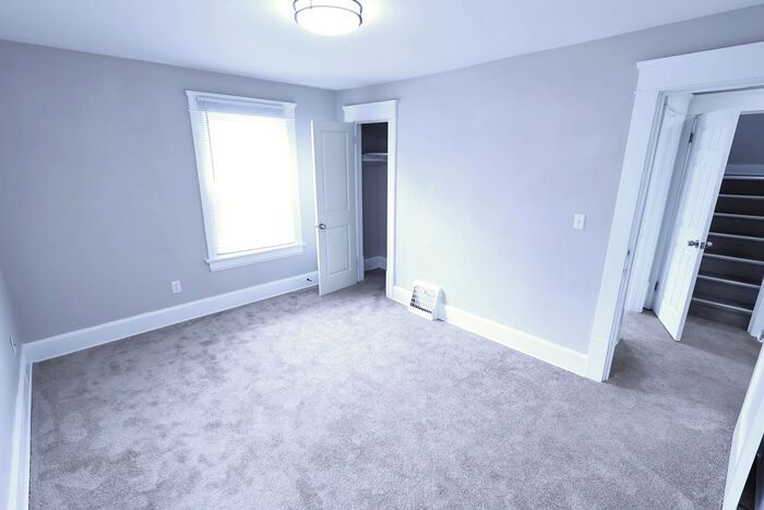 Welcome into a beautifully refreshed home featuring a large, open living space with tons of natural light, fresh flooring, and a clean modern feel throughout. The layout flows effortlessly from the living area into a separate dining space and into a fully updated kitchen with sleek cabinetry, ample counter space, and modern finishes, making it ideal for both everyday living and hosting. Upstairs offers comfortable bedrooms with great natural light and a cozy feel, while the overall layout provides plenty of space to spread out. The home blends classic character on the exterior with updated interiors that feel bright, clean, and move in ready. Outside, enjoy a covered front porch, private driveway, and detached garage for convenient parking and storage. Pet friendly, making it a great fit for you and your furry companions. Smart home features including a smart lock and thermostat add an extra level of comfort and convenience. This property allows self guided viewing without an appointment. Contact for details.