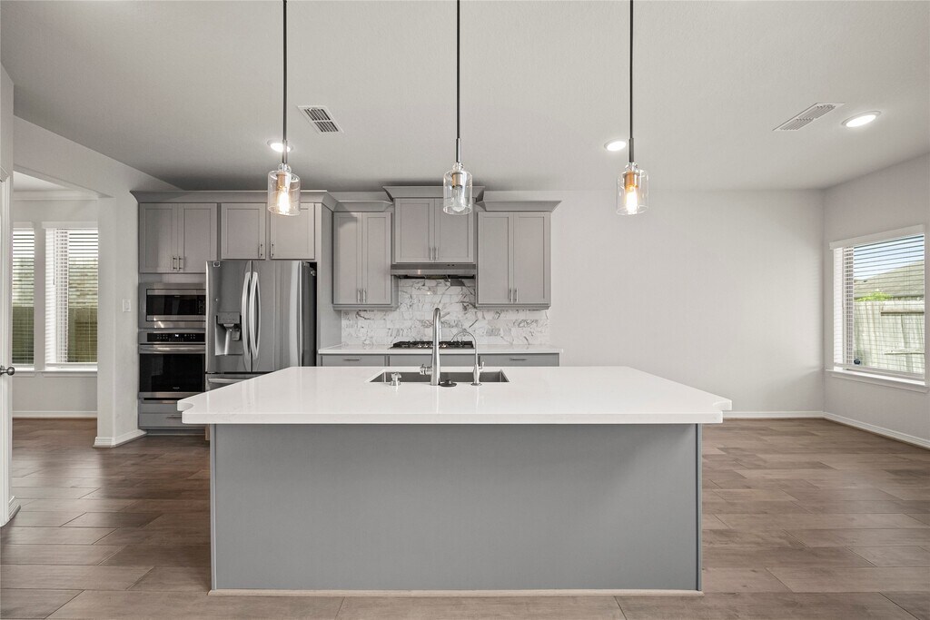 Welcome to this stunning two-story home in a quiet neighborhood,offering 5 spacious bedrooms and 4 full bathrooms—perfect for families or anyone who loves extra room. Step inside to find soaring ceilings,an abundance of natural light from the wall of windows,and an open-concept floor plan that connects the living,dining,and kitchen areas seamlessly. The modern kitchen features granite countertops,stainless steel appliances,ample cabinet space,and a large center island,making it the perfect spot for cooking and entertaining. Enjoy movie nights or game days in the spacious living area with a cozy fireplace,or step outside to a private backyard ready for family gatherings. MLS# 35769237