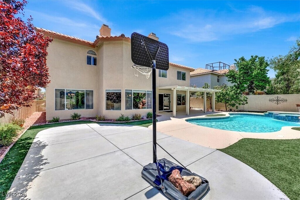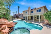 Convenient prime Cheyenne & Durango North West Location! Just under 3400 sqft Stunning upgraded, updated and renovated 4 bedroom + Den or 5th bedroom w/closet, 3 bathrooms and a large 3 car garage with lots of storage.Sparkling in-ground heated pool + spa & water fall. Located on a cul-de-sac street with Beautifully landscaped lot and an Entertainers back yard w covered patio. Large eat in island kitchen with Quartz Counter tops, Double ovens, with new stainless steel appliances. Huge Family Room, Separate living room and formal dining room. Grand stair case, recent interior and exterior paint, neutral colors, extensive use of top grade luxury vinyl plank through out, spacious bedrooms, very functional floor plan and picturesque curb appeal! New & recent A/C Professionally property managed by Hudson Real Estate. Clean and ready to go!