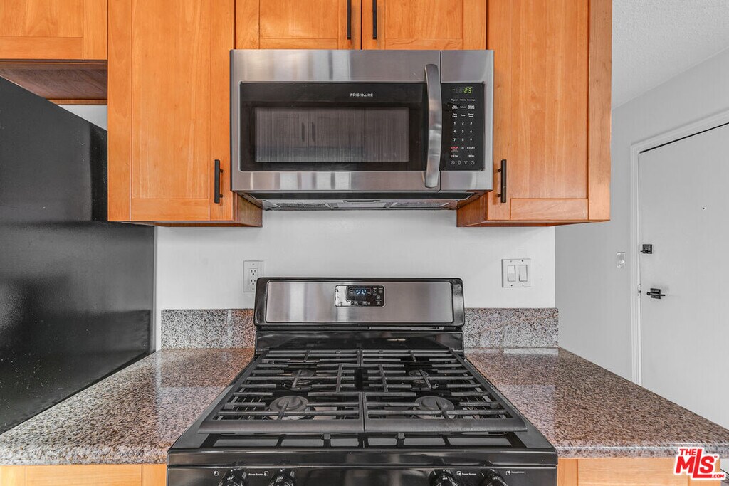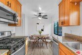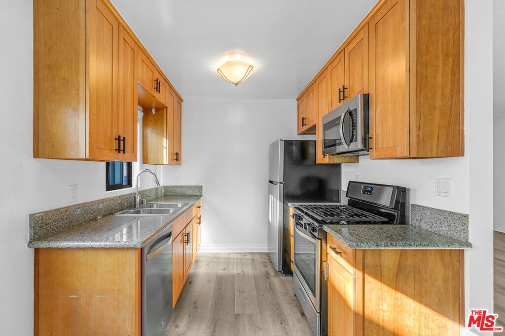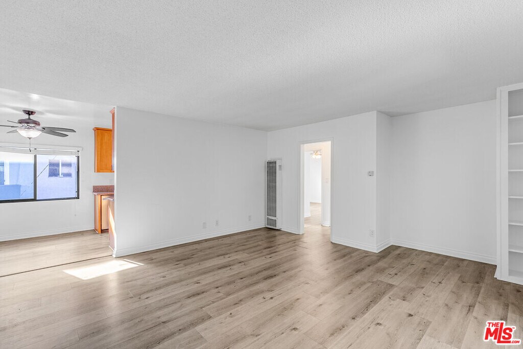 Come on up the stairs and step into your new happy place! The living room is spacious with floors that practically sparkle, a big picture window that lets the sunshine pour in, and even a charming white built-in bookcase in the corner just waiting for your favorite reads or plant collection. The kitchen is all about chef's kiss vibesfully stocked with sleek stainless-steel appliances (dishwasher, fridge, gas range, and floating microwave). There's a sweet little breakfast nook for your morning coffee (or evening wine), plus another big window and a ceiling fan to keep the good vibes flowing. Down the hall, you'll find bonus closet space (linen, cleaning, Costco hauls, whatever your heart desires). The bathroom is shiny and chic with a brand-new vanity and a custom glass shower door that screams "spa day, every day." Both bedrooms are roomy enough to fit a King (yes, you can finally stretch out) and come with mirrored sliding-door closets so you can check the fit before heading out. This gem comes with two parking spots (score!) and on-site laundry shared with just three other units so no waiting in line with strangers. There's also an EV charging station on-site! And the location? Perfection. You're minutes from Culver Junction, the Arts District, Pico-Robertson, or Miracle Mile. Please note: A portable AC will be included with the rental. (Not pictured.) EV charging available! MLS# 25585887