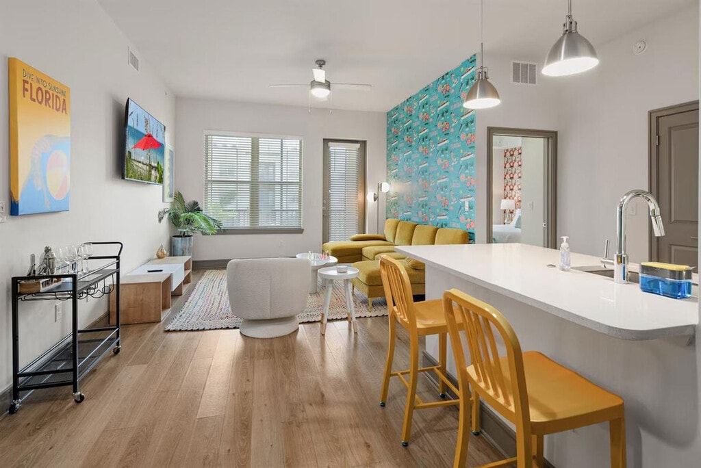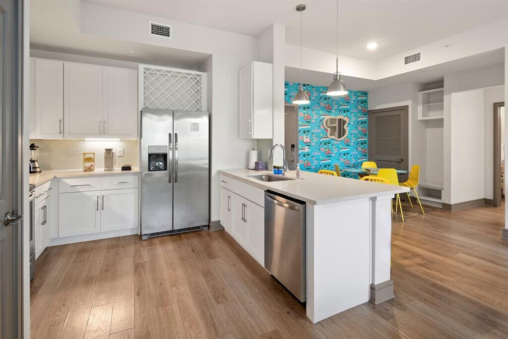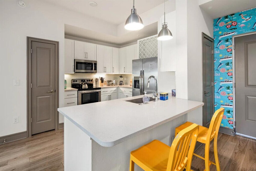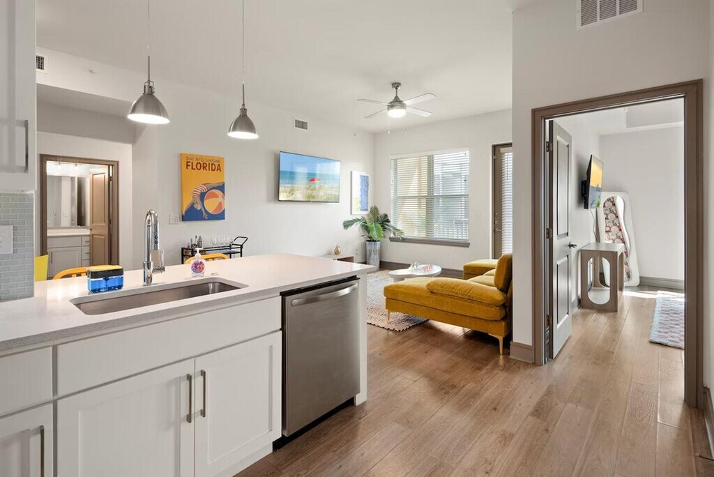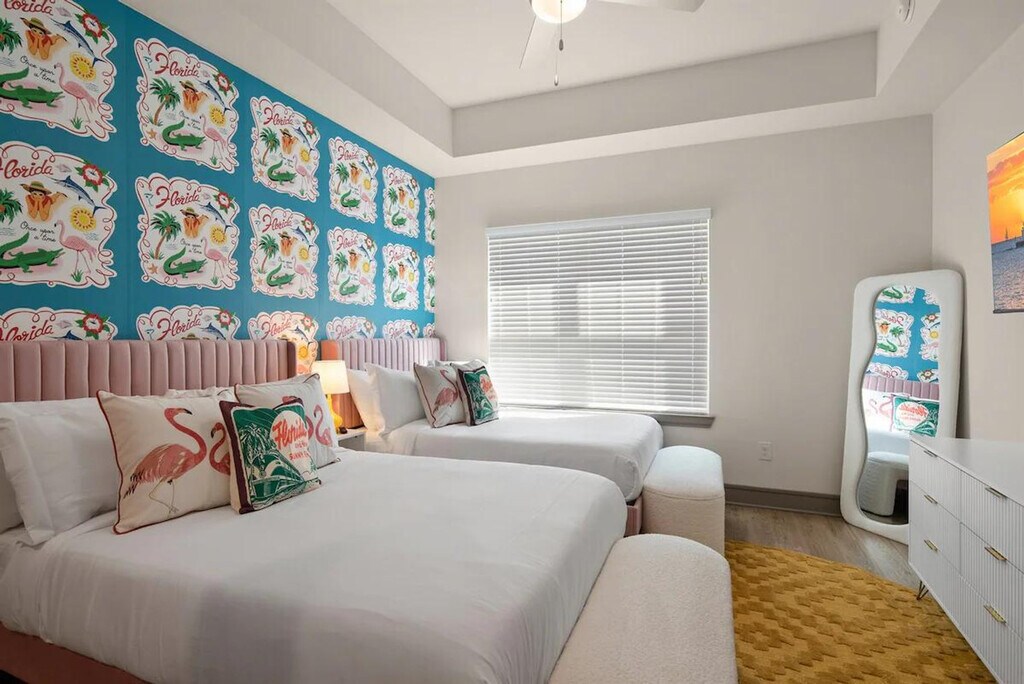 Escape to a beachy paradise at this 2-bedroom, 2-bathroom property. Enjoy a luxe master suite, cozy second bedroom, fully equipped kitchen, relaxing living room, and private balcony. Located in one of Naples's most exclusive complexes with amenities such as pools, a full fitness center, a golf simulator, a movie theater, meeting spaces, and more. Just minutes from beaches, shops, restaurants, and Great Wolf Lodge, this apartment is the perfect retreat for relaxation and convenience. The apartment features a spacious and inviting living area with bright, comfortable furnishings and an elegant design. Large windows provide plenty of natural light, and the open layout is perfect for relaxing or entertaining. The fully equipped modern kitchen, with modern appliances and generous counter space, is ideal for preparing delicious meals and drinks during your stay. Two beautifully appointed bedrooms offer plush bedding and spacious closets, designed for maximum comfort and restful nights. Luxurious bathrooms with spacious showers, ample counter space, and premium amenities ensure a relaxing and refreshing stay. Guests have access to resort-style amenities including pools, a fitness center, a golf simulator, a private movie theater, a clubhouse, meeting spaces, and more. Ample free parking is available in the complex parking lot. A pet fee of $150 per pet applies, with a maximum of one pet allowed. Located in the heart of one of Naples’s most vibrant and desirable areas, this apartment offers the perfect mix of luxury and convenience. You are just minutes from beaches, shops, restaurants, and Great Wolf Lodge, making it an ideal spot for exploring the local attractions. Your unit has a secure entrance, and you will have access to all common area amenities including the pool, gym, clubhouse, golf simulator, theater room, meeting spaces, and car wash. The property will be stocked with basic toiletries, bed linens, kitchen necessities, cleaning supplies, and laundry detergent. A $35 lost and found management fee applies for items left behind, covering the time and handling involved in locating, storing, and preparing the item for shipment. Guests are required to provide a prepaid shipping label for the return. Double-check for all belongings before checking out. [SI]
