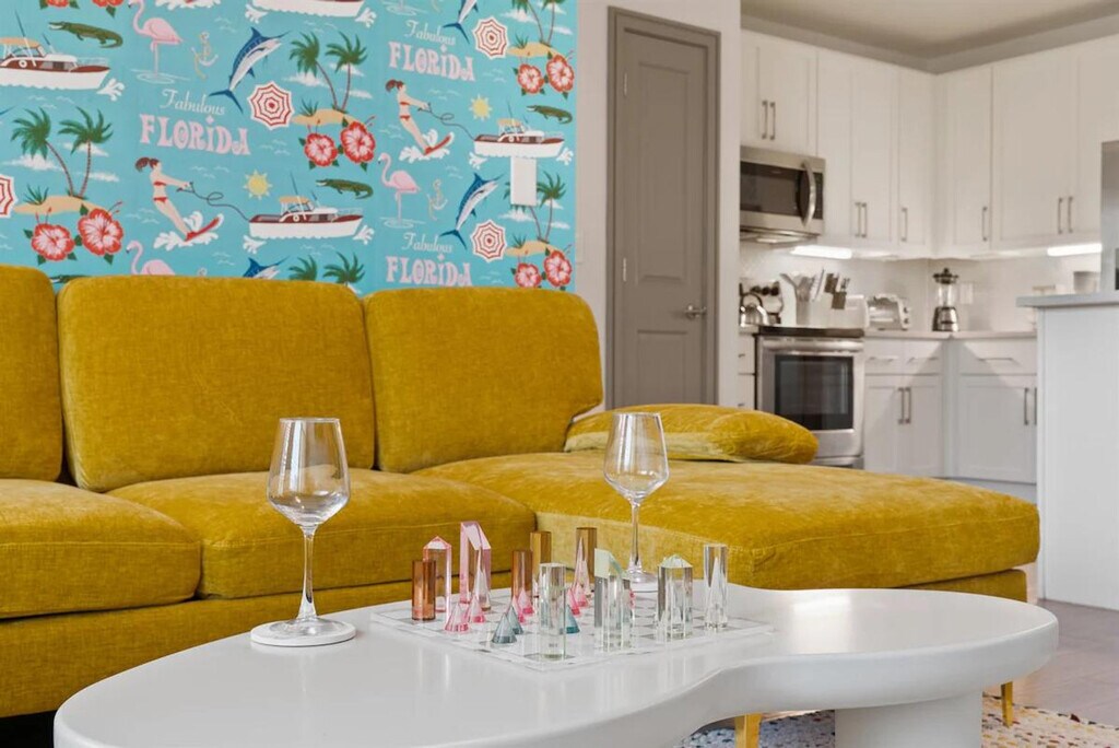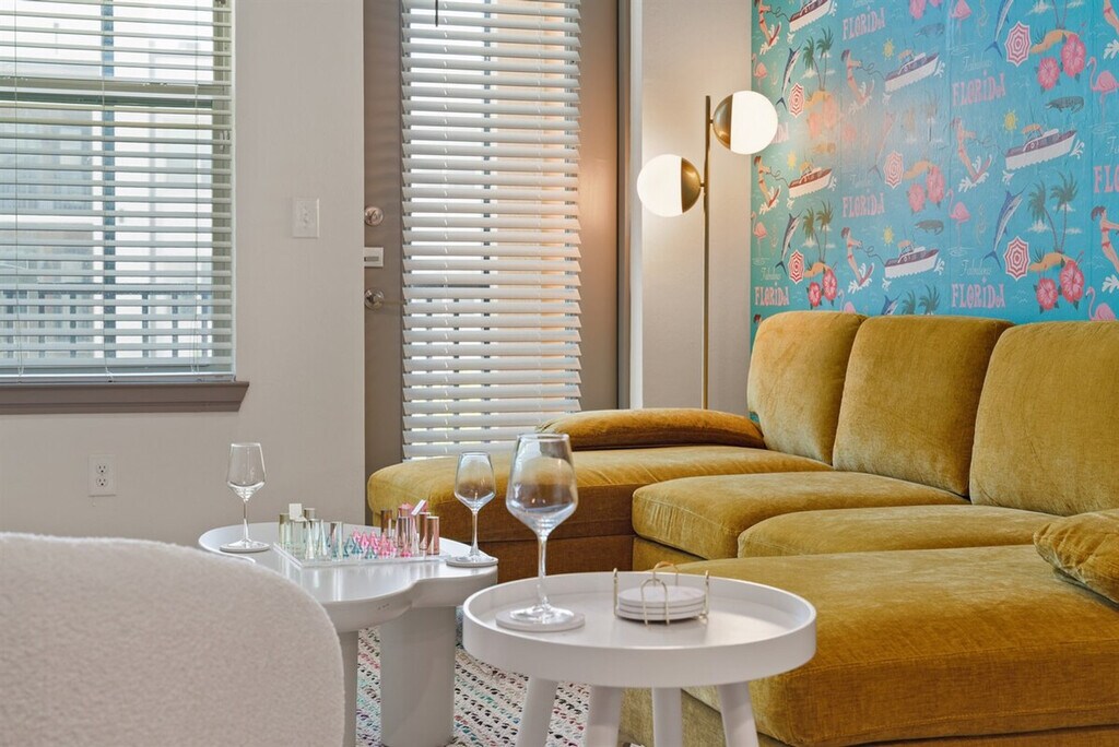 Escape to a tropical paradise at this 2-bedroom, 2-bathroom property. Feel at home in the luxe master suite, cozy second bedroom, fully equipped kitchen, relaxing living room, and private balcony. Located in one of Naples's most exclusive complexes, the apartment offers amenities such as pools, a full fitness center, a golf simulator, a movie theater, and meeting spaces. Just minutes from beaches, shops, restaurants, and Great Wolf Lodge, this is the perfect retreat for relaxation and convenience. The apartment features a spacious and inviting living area with bright, comfortable furnishings creating a cozy atmosphere. Large windows provide abundant natural light, and the elegant design is perfect for relaxing or entertaining. The fully equipped modern kitchen boasts modern appliances and generous counter space, ideal for preparing delicious home-cooked meals. The two beautifully appointed bedrooms offer plush bedding and ample closet space for your comfort, designed to offer restful, peaceful nights. Luxurious bathrooms with spacious showers, large counters, and premium amenities ensure a comfortable, spa-like stay. The property offers resort-style amenities including pools, a fitness center, a golf simulator, and a private movie theater. There are also a clubhouse and meeting spaces for guest enjoyment. Plenty of free parking is available in the complex. A pet fee of $150 is applicable per pet, with a maximum of one pet allowed. Located in the heart of one of Naples's most vibrant and desirable areas, this tropical oasis combines luxury and convenience. The apartment is just minutes from beaches, shops, restaurants, and Great Wolf Lodge, offering an unbeatable Naples location. Your unit has a secure entrance, and you will have access to all common area amenities including the pool, gym, clubhouse, golf simulator, theater room, meeting spaces, and car wash. The property will be stocked with basic toiletries, bed linens, kitchen necessities, cleaning supplies, and laundry detergent. A lost and found management fee of $35 will apply for items left behind, which covers the time and handling involved in locating, storing, and preparing the item for shipment. Guests are required to provide a prepaid shipping label for the return. Double-check for all belongings before checking out. [SI]