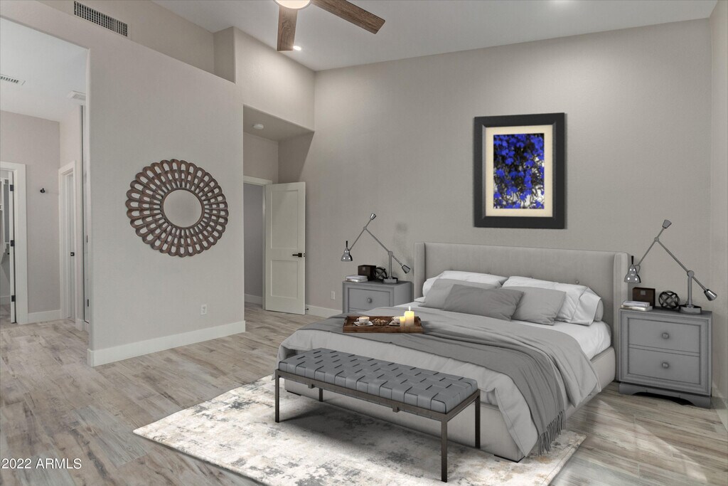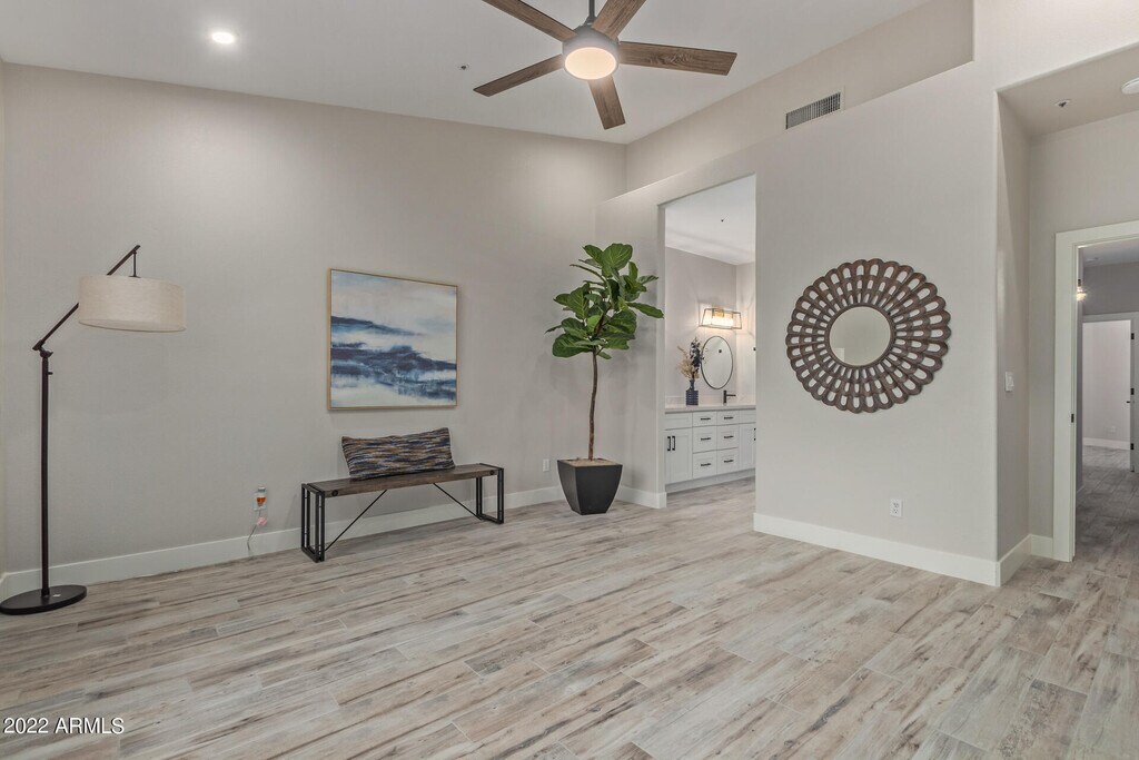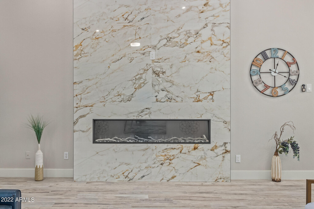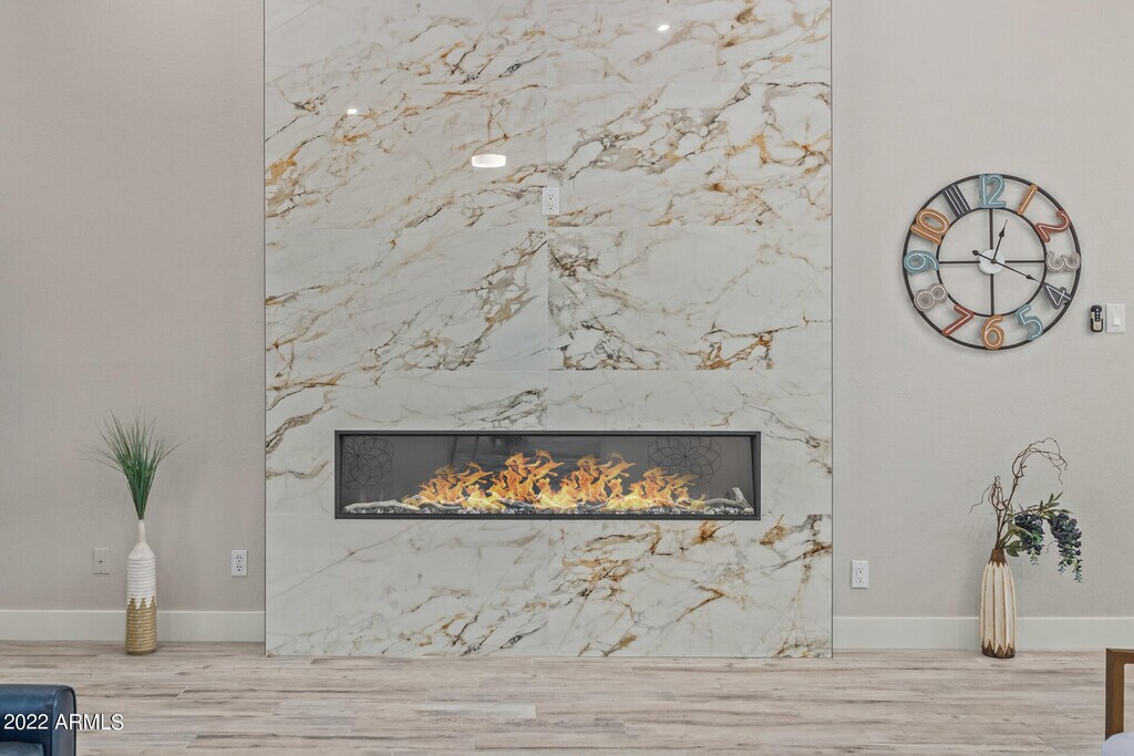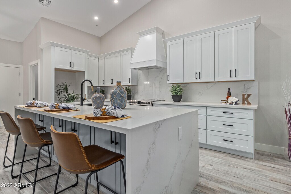 Remodeled in the heart of North Scottsdale's Ironwood Village community. This elegant modern floor plan was designed with the most refined of connoisseurs in mind. You'll love the beautifully appointed kitchen that offers high-end design coupled with seamless functionality. Vaulted ceilings provide an abundance of natural light with ample interior space,ideal for entertaining family,friends and neighborhood guests. High-end finishes include porcelain wide-plank flooring,Modern Flames linear fireplace framed by oversized porcelain tiles,white shaker cabinetry,custom designed range hood,Quartz countertops with waterfall island,full quartz backsplash,modern pendant lighting and new stainless appliance package.