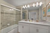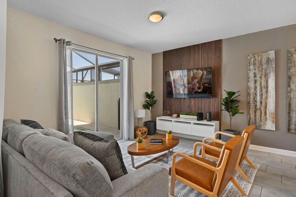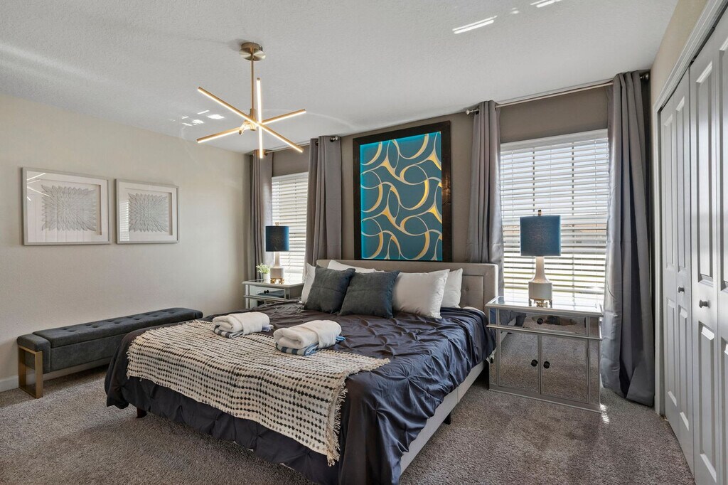 Indulge in this chic 4-bedroom, 3-bathroom townhome, accommodating up to 10 guests, ideal for an unforgettable family retreat. Enjoy ample space and a private pool at the prestigious Champions Gate resort. Conveniently located near markets, restaurants, and shops, this Orlando/Kissimmee getaway ensures vacation perfection. Enter this welcoming 4-bedroom, 3-bathroom townhome, thoughtfully crafted to delight your family at every turn. The open living, dining, and fully equipped kitchen areas form a central hub for relaxation and culinary adventures. Outside, your personal retreat awaits with a private, heatable pool on the patio inviting you to unwind. The first floor boasts a delightful king bedroom with a convenient bathroom. Upstairs, a chic master king bed suite beckons, alongside two additional themed bedrooms sharing a bathroom – one with a Harry Potter theme featuring a full and twin beds, and the other with a Moana theme featuring a bunk bed with full and twin beds. For added convenience, a well-appointed laundry room with a washer and dryer is at your disposal. Stay connected with complimentary Wi-Fi and enjoy the convenience of free parking. A considerate welcome kit with essential bathroom and kitchen amenities ensures a seamless start to your stay. Pool heating is available for an additional fee and there is a charge for using the barbecue grill. Champions Gate Resort is a resort-style community that offers every imaginable amenity for a blissful stay. It features an impressive clubhouse with a variety of courts and outdoor activities like tennis, beach volleyball, and a golf course, while its restaurant and fitness center will help you stay refreshed and fit. Its swimming pool complex is perfect for a splashy day, with slides, a lazy river, and a kids splash pool. Plus, the resort is just 20 minutes away from Disney Parks, ensuring plenty of opportunities for fun and adventure. Shopping, dining, and entertainment are also within reach, with stores, restaurants, and supermarkets nearby. It's the perfect place for a family getaway. Guests are responsible for replenishing bathroom and kitchen amenities. Quiet hours are between 22:00 and 8:00. [SI]