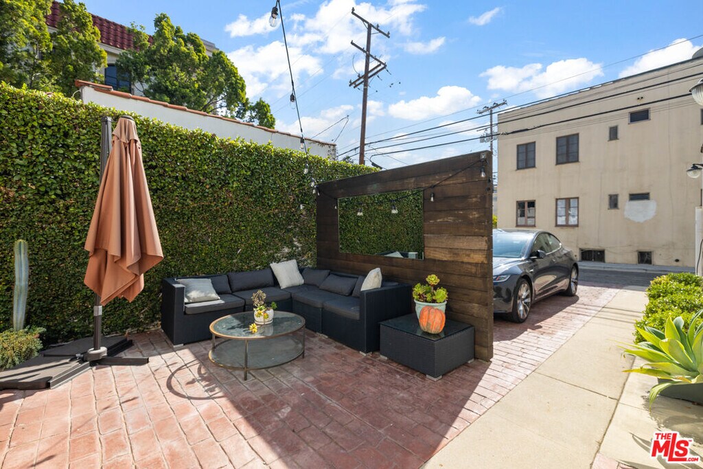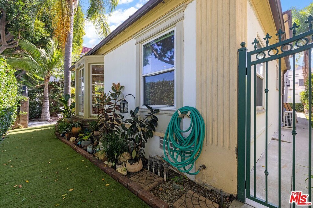 Charming, light and bright one bedroom bungalow in Beverly Hills. Tucked behind private gates, you'll find an adorable home with spacious living room, dining area, and kitchen. The bedroom features a generous walk-in closet and the home includes in-unit laundry and central air conditioning. Enjoy plenty of outdoor space with beautifully maintained common areas shared between two other units. Whether you're enjoying the lounge chair, couch, or patio dining area - there's plenty of outdoor space to enjoy. This unit also comes with one designated parking space. A rare find in an unbeatable location, this bungalow offers the best of Beverly Hills living. MLS# 25610483
