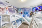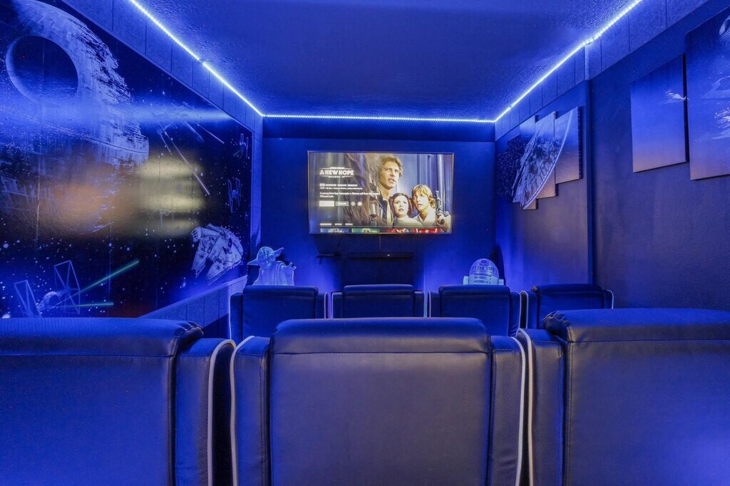 Welcome to your dream Disney getaway! This spacious 6-bedroom home in Paradise Palms Resort is just 3.4 miles from Animal Kingdom. Enjoy over 3,200 sqft of bright, modern living space, complete with a private heated pool and a magical Harry Potter-style nook. Perfect for families and large groups seeking comfort, fun, and relaxation, this beautifully remodeled vacation home offers a home away from home experience. The home features a fully equipped kitchen with a Keurig and drip coffee maker, a custom home theater room for unforgettable movie nights, and a private arcade room for all ages. Thoughtfully designed bedrooms include two king suites and family-friendly sleeping arrangements for up to 12 guests. Enjoy high-speed Wi-Fi, in-house laundry, and central AC with an EcoBee smart thermostat. Parking is available for up to 4 vehicles. The private heated pool is available for an additional $30 fee per day, which must be requested in advance. Guests also enjoy full access to the resort’s amenities, including a clubhouse, gym, community pool, arcade, tennis courts, and more, all within a secure, gated community with 24/7 security. Located in the heart of Paradise Palms Resort, this home is just 3.4 miles from Disney’s Animal Kingdom and close to other attractions like Disney World Resort, Epcot, Hollywood Studios, and Universal Orlando Resort. Nearby shopping includes Target, Walmart, and Publix, while dining options range from Krispy Kreme to Olive Garden. Quiet hours are observed from 10 PM to 8 AM. Check-in is any time after 4 PM until 10 PM, and check-out is at 10 AM. A late check-out without authorization will incur a night-rate cost penalty. Parties are fully prohibited, and there is a $300 penalty for smoking on the property, which will also result in dismissal from your rental without a refund. A $250 penalty applies if noise levels, parties, or other obscene behavior require a police callout, leading to dismissal from the property without a refund. A $100 penalty is charged for leaving trash outside the entrance to your property. Damage to the interior of the property or common areas will result in a pro-rated auto-chargeback from your booking account. Upon checkout, please turn off the lights, A/C unit, water, and gas/stove, and lock the door behind you. The home is equipped with high-speed Wi-Fi and a digital house entry/lock system, making it convenient for remote work. A laptop computer is not included. [SI]
