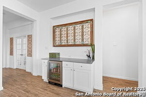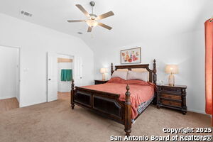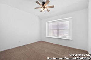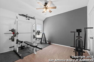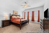 This home is beautiful and has plenty of room to entertain. The modern kitchen has an added built in bar and mini fridge. Ceiling fans are installed in the living room, four bedrooms and the bonus room. Cabinet and countertop has been added in the laundry room for a folding station. Covered backyard patio with your own private backyard fence line. Irrigation system in the front and backyard. The washer, dryer, refrigerator and security system with exterior cameras, door sensors and system control pad will stay, but tenant will need to set up new security service if they choose to use. The neighborhood HOA has a clubhouse with a gym, pool and playground. These amenities are within walking distance of the home.