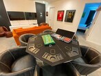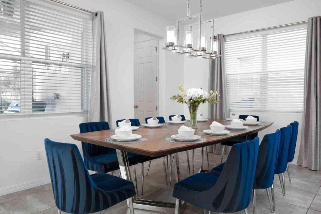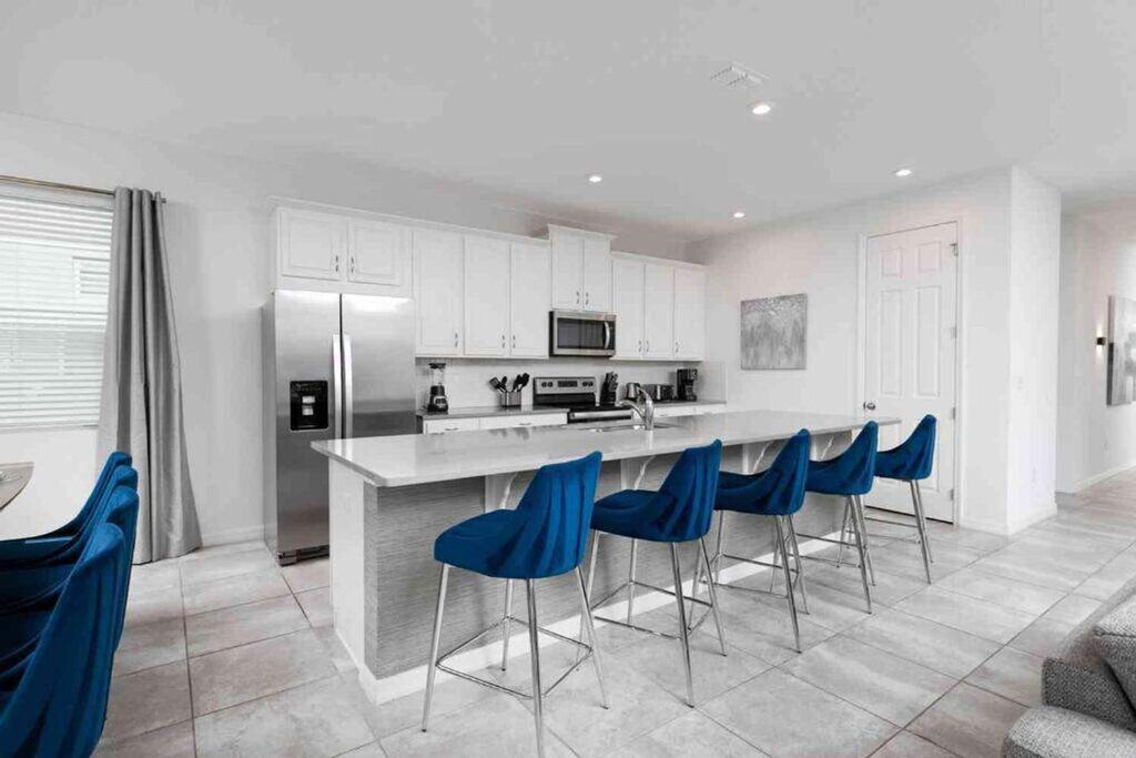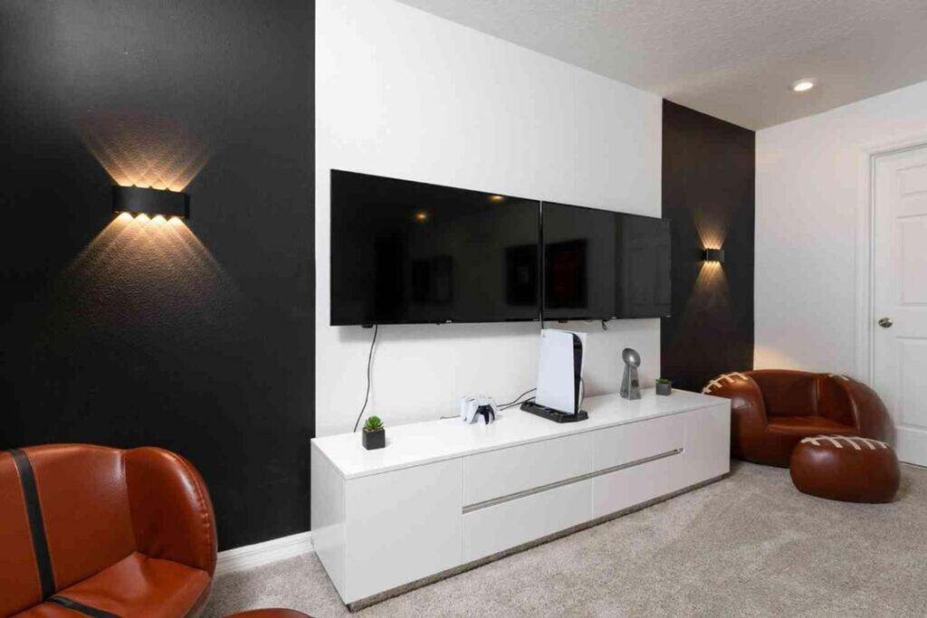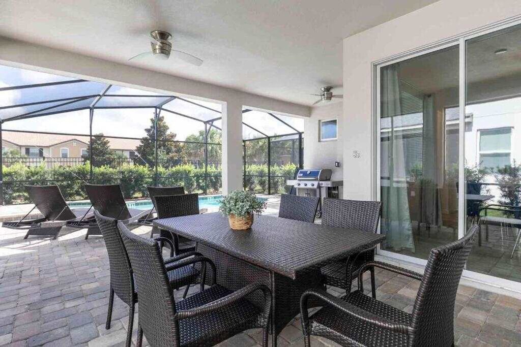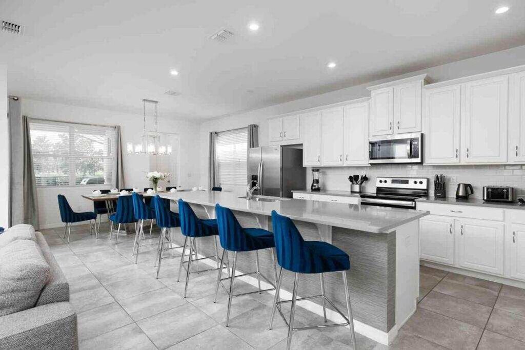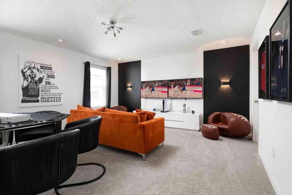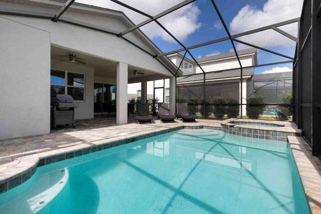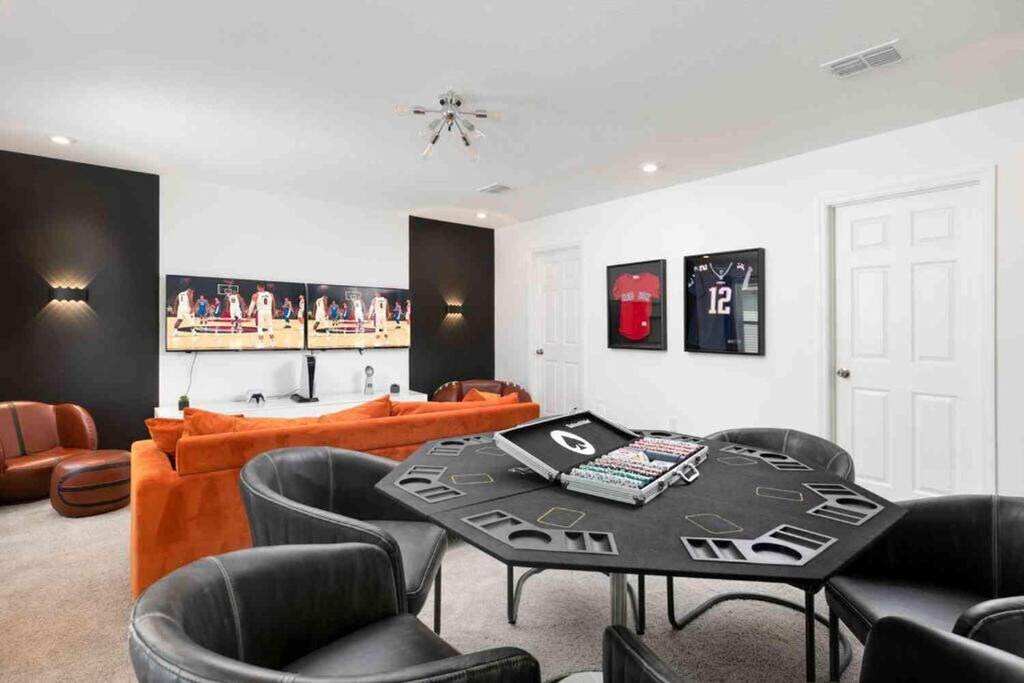 Escape to luxury and feel at home in this expansive villa nestled in Solara Resort. Designed for families seeking the ultimate Orlando adventure, this villa features 6 spacious bedrooms and 5 bathrooms. This villa offers 2 living areas, a game room, a free washer/dryer, a large full kitchen with stainless steel appliances, 2 indoor dining areas, and an outdoor oasis with patio furniture, an outdoor pool, and a hot tub. Pool and spa heating is available for $35 per day of stay with at least a week's notice. Parking can accommodate up to 2 vehicles in the driveway parked side to side. The Solara Resort Grand Clubhouse features an expansive water complex. A wave simulator offers a perfect opportunity to learn how to surf. The little ones will prefer the splash pad for some fun in the sun. The resort is located within a gated community and secured by a 24-hour security guard. Nearby attractions include Disney World (7.6 miles), Universal Studios (21.7 miles), SeaWorld (16.5 miles), Falcon Fire Golf Course (11.7 miles), Disney Golf Course (13.7 miles), Premium Outlets (20.8 miles), and Orlando International Airport (27 miles). Quiet hours are between 10 PM and 8 AM. There is absolutely no smoking and no drugs allowed inside the home or elsewhere on the property. Only the number of guests indicated on the reservation are allowed to stay overnight, unless otherwise agreed upon. Up to 2 cars may park side-to-side in the driveway in front of the garage. Please don't park on the street. Please respect the neighborhood and neighbors and keep excessive noise to a minimum between 10 PM and 8 AM. We reserve the right to terminate a reservation without refund, and/or pursue monetary fines if guests are found to be in violation of any of these rules. Check-out time is 10 AM, and a fee of up to $300 may be incurred for staying beyond the scheduled check-out time. [SI]