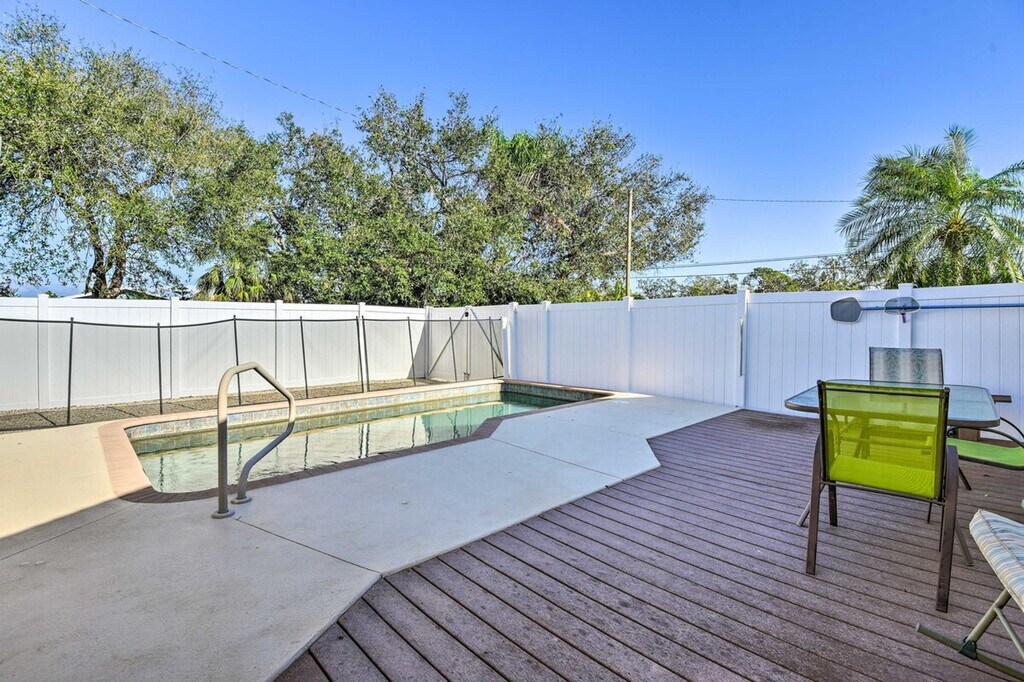 Feel at home in this charming 2-bedroom, 2-bathroom home in Venice, Florida, boasting a bright, airy interior and a well-appointed outdoor space. This home offers free Wi-Fi, a washer and dryer, and an outdoor shower. The kitchen is equipped with a dishwasher, coffee maker, cooking basics, dishware and flatware, toaster, Crockpot, and blender. Enjoy cable TVs, dining tables, an open floor plan, and books for indoor entertainment. There is an optional pool heat fee applied to the entire stay. Spend your days swimming in the private outdoor pool or head to Manasota Key Beach or Venice Beach. Explore Historic Downtown Venice. Smoking, pets, events, parties, and large gatherings are not allowed. Guests must be at least 25 years old to book. Additional fees and taxes may apply. A photo ID may be required upon check-in. [SI]
