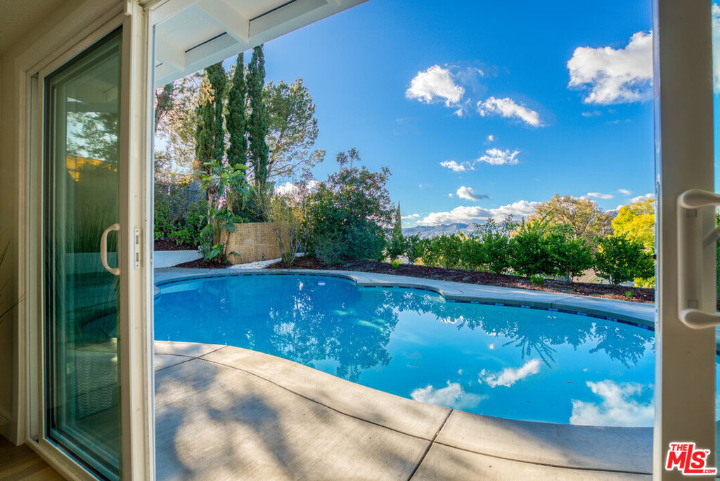 WEST HILLS VILLA W/ BREATHTAKING VIEW. FULLY FURNISHED, FULL EQUIPPED. AVAILABLE FOR SHORT AND LONG STAYS. Enjoy a peaceful & welcoming property on 15 minutes away from great shops & restaurants in the Commons at Calabasas! . Sparkling in-ground pool . Large kitchen & spacious living room & access to the backyard. . Tree-lined view in a welcoming neighborhood. A truly perfect home for all your entertainment needs! The property features gorgeous drought tolerant landscaping, an oversized sparkling pool, multiple outdoor entertainment areas and the perfect setting to enjoy the unobstructed 180-degree view of the Chatsworth Reservoir and surrounding mountains. This home has been reimagined and redesigned incorporating the absolute comfort and luxury lifestyle! No expenses spared, no details grand double entry doors will lead you to the open living space, completed with blond European oak floors throughout, high ceilings, and an abundance of natural light. (No interior or exterior steps A modern kitchen , black quartz countertops and large island with a butcher block the perfect playground for any home chef! Adjacent to the kitchen is an elegant dining room open to a formal living room with a custom stone fireplace. ; The sliding glass doors open to the backyard and pool for a perfect indoor-outdoor living set up. The spacious family room is perfectly situated next to the kitchen offering privacy and comfort. Down the hall to the left the 2 large secondary bedrooms and a guest bath featuring a soaking tub and high-end designer finishes. To the right you will find the ultimate primary suite, complete with a walk-in closet, a gorgeous on suite bath, and a glass sliding door leading to the back yard and expansive view. Price reflects year lease inquire about short term MLS# 26649375