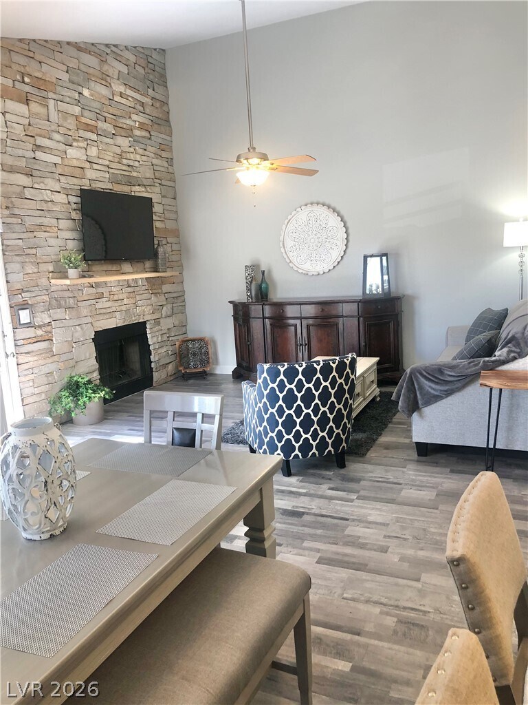 **SEE THE PHOTOS!!** FULLY FURNISHED AND REMODELED SECOND FLOOR WALK UP CONDO WITH BEAUTIFUL FURNISHINGS AND ATTACHED 1 CAR GARAGE JUST BELOW YOU! TWO BALCONIES, NEW FLOORING AND DESIGNER PAINT. GORGEOUS ROCK WALL FROM FLOOR TO CEILING! YOUR OWN COURTYARD GOING STRAIGHT UP TO YOUR OWN BALCONY. NO SHARING STAIRS! STAINLESS APPLIANCES, BEAUTIFUL FIREPLACE, GRANITE COUNTERS, 4 CEILING FANS AND BIG BASEBOARDS. FURNISHED DOWN TO THE SHEETS, TOWELS, SILVERWARE, POTS AND PANS, ETC! SOARING VAULTED CEILINGS MAKE THIS PLACE FEEL SO LARGE! GREAT LOCATION INSIDE THIS COMPLEX. DOWNTOWN SUMMERLIN AND WHOLE FOODS ARE JUST UP SAHARA! THREE MONTH MINIMUM LEASE. NEED A LONGER LEASE? LET US KNOW. MINIMUM CREDIT SCORES REQUIRED OF ALL OCCUPANTS 18 AND OVER. ALL PERSONS ON LEASE MUST OCCUPY THE PROPERTY CONTINUOUSLY. SORRY.....NO AIRBNB, VRBO, RENT TO GO, RENT A ROOM, ETC. TENANT PAYS ELECTRIC BILL. THIS IS AN ALL ELECTRIC COMPLEX. TWO SWIMMING POOLS HERE FOR THE HOT SUMMER AHEAD!