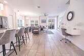 Schedule your private showing today and come experience everything this amazing home and community have to offer. Located in the desirable Champions Gate Resort, this spacious and well-appointed home is ideal for long-term living, offering comfort, privacy, and a functional layout in a resort-style community. The property is conveniently located near major highways, shopping, dining, and Central Florida\'s top attractions, with easy access to Disney, Universal Studios, and the Champions Gate Oasis Club: access to resort-style pool, lazy river, water slides, fitness center, and more. The bright, open-concept living area offers a welcoming space for everyday living and entertaining, flowing seamlessly into the kitchen and dining areas. The home features five bedrooms thoughtfully designed to provide flexibility and privacy. Two bedrooms are located on the first floor, ideal for guests, extended family. Upstairs, there are three additional bedrooms, including two private en-suite bedrooms. All bedrooms feature tasteful dcor, plush bedding, and comfortable furnishings, ensuring a restful night\'s sleep. With four full bathrooms, the home is well suited for long-term residents and families. . Residents enjoy access to exceptional resort amenities, including a resort-style pool, lazy river, water slides, fitness center, and more. The home also offers a private screened pool and spa with a covered patio, perfect for outdoor relaxation. Additional features include high-speed internet, central air conditioning, washer and dryer, and a fully equipped kitchen with stainless steel appliances, making this an excellent opportunity for long-term living in a secure, resort-style community.