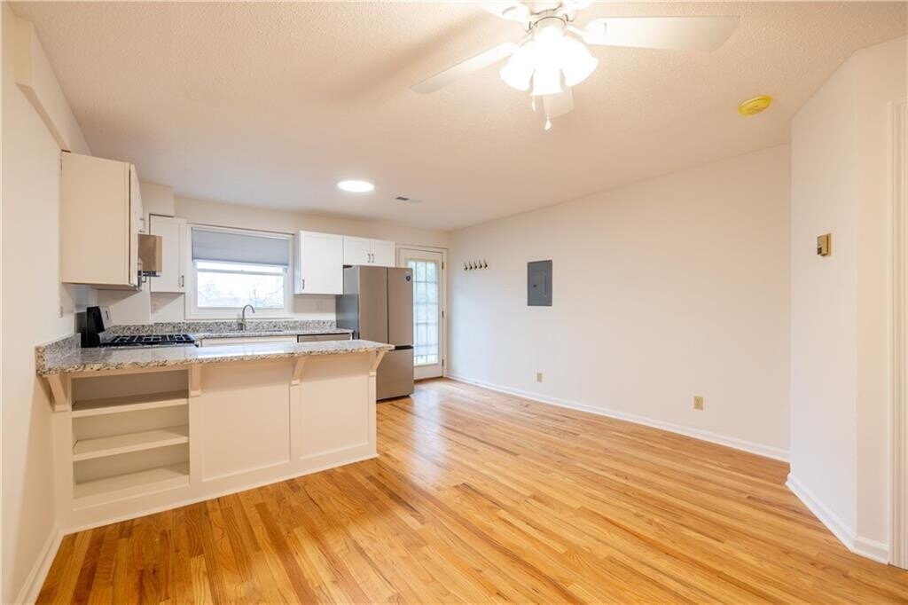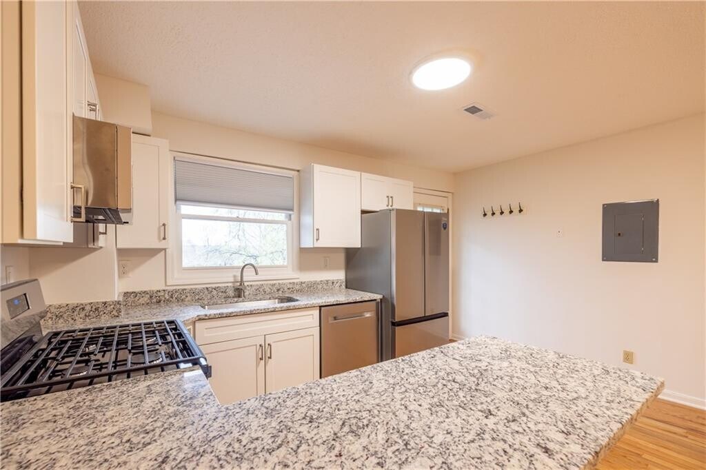 MIDTOWN - 2 blocks to park. Picture perfect one bedroom has been newly renovated top to bottom. Unit #3 is upstairs in a 4 unit converted 1920's Bungalow. Apartment features: Sunny kitchen w white cabinets,granite counters,stainless appliances,gas cooking and breakfast bar open to living room; all new bath w walk-in shower,vanity w quartz countertop,period tile flooring and in-unit washer/dryer; bedroom with hardwoods and walk in closet; and large private deck. Hardwoods throughout,ceiling fans and new lighting,fresh paint,new blinds,security system. Off street parking at rear of building. NO PETS. MLS ID 7742267