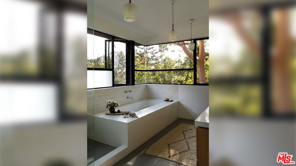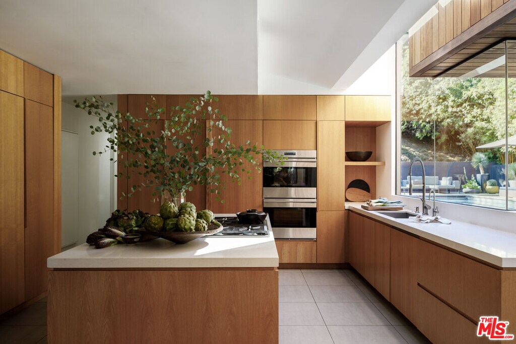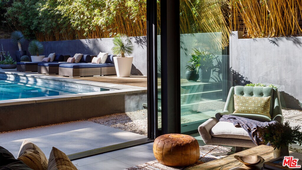 Experience elevated living in this masterfully reimagined Mid-Century modern residence, ideally located within the acclaimed Wonderland Avenue Elementary School district and near the Mulholland Tennis Club, in Laurel Canyon's exclusive Wonderland Park enclave. This fully furnished architectural masterpiece seamlessly blends historic charm with contemporary luxury, offering an unparalleled rental opportunity in one of Los Angeles' most coveted neighborhoods. The thoughtfully designed floor plan showcases a dramatic thirty-foot skylight that floods the interior with natural light, while floor-to-ceiling sliding glass doors create a seamless connection to private outdoor spaces. The five-bedroom residence features a luxurious primary suite with sweeping canyon views, perfect for those seeking a sophisticated work-from-home lifestyle with its treehouse-inspired office. The gourmet kitchen serves as the home's centerpiece, appointed with custom white oak cabinetry and dual Caesarstone waterfall islands ideal for entertaining. Additional amenities include a dedicated screening room, whole-home Control 4 system with built-in speakers, and a sparkling heated pool surrounded by mature landscaping. This turn-key offering comes completely furnished with designer selections and sustainably minded features including solar power. Nestled among architectural landmarks including Pierre Koenig's Case Study House #21, this exceptional property offers distinguished residents the opportunity to experience the pinnacle of Los Angeles luxury living in a historically significant setting. MLS# 26667733