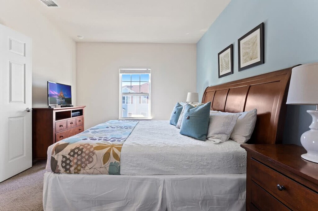 Escape to this Kissimmee townhouse, ideal for families! This spacious 4-bedroom, 3-bathroom home sleeps up to 12 guests and features a fully equipped kitchen, in-unit laundry, and a private entrance. Relax by the community pool and enjoy resort access. With comfortable beds including king and twin beds, and a sofa bed, there's plenty of space for everyone to unwind after a day of exploring Kissimmee and its attractions. Step into this inviting townhouse featuring four bedrooms and three bathrooms, thoughtfully designed for families. The open-concept living area serves as the heart of the home, perfect for quality time. Unwind on the sofa bed in the living room while enjoying entertainment on the cable TV. Each bedroom offers a peaceful sanctuary. The master bedroom boasts a king-size bed for restful nights. The second bedroom also features a king-size bed. The third bedroom offers two single beds, and the fourth bedroom provides two double beds. Three well-appointed full bathrooms ensure everyone's convenience. The fully equipped kitchen makes meal preparation a breeze, complemented by a dining table for family meals. Enjoy the convenience of in-unit laundry facilities. Community amenities include an outdoor pool, fitness center, and a game room. Pool heating is available upon 24 hours advance request for an additional fee of USD$35 plus tax per day with a minimum of 3 consecutive days. A $35 fee plus tax is required for the usage of the barbecue grill available at the property. For pet-friendly units, the additional cleaning fee is USD$250 for one pet plus tax per stay or USD$150 per pet for two pets or more. Unauthorized pets will incur a non-refundable penalty fee of USD$500 plus tax per stay. Pets are not allowed inside the pool at any time. West Lucaya Village Resort is an upscale gated community located just 6 miles from Walt Disney World. This family-friendly resort sits nestled just off Hwy 192 in Kissimmee, Florida, and is one of the most desired resorts in the Orlando area. Only a 25-minute drive from the Orlando International Airport, it is centrally located to all of Orlando’s famous attractions including Sea World, Universal Studios, Disney World, and more. The resort amenities include a gated community with a resort pool and hot tub, sand volleyball court, clubhouse with fitness center, and internet café. Enjoy luxury living at its finest and take advantage of the game room and sports courts to make your stay the best one possible. Whether you want to escape for peace and quiet or explore for a bit of adventure, West Lucaya Village Resort can fulfill all your desires. The property is about a 5-minute walk to the main clubhouse. Quiet hours are between 10:00 PM and 8:00 AM. Check-in is at 4:00 PM and check-out is at 10:00 AM. Late check-out must be authorized in advance and is only available until 4:00 PM, after which a full night rate is due. Smoking is prohibited in the house or patio/pool area, and any signs of smoking will result in an additional non-refundable fee of $250 plus tax. Guests are expected to empty full trash bins and dispose of garbage bags appropriately. An additional fee of USD$100 plus tax will be charged for excessive trash left in the house or overflowing bins. Guests are responsible for any violation and/or additional fees charged by the community association for incorrect disposal of trash. A laptop computer is not included. Complimentary Wi-Fi internet and cable service are available at all properties, but service interruptions or slowdowns may occur. The partner team will ensure the service provider is aware and taking the proper actions regarding any issues. [SI]