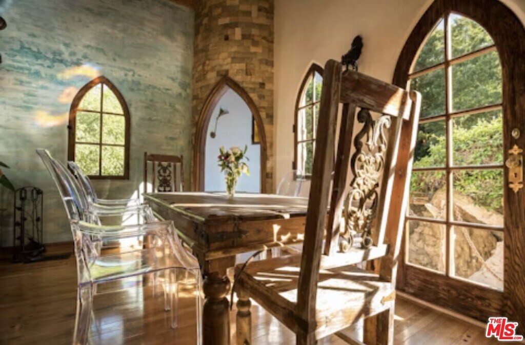 Historic Laurel Canyon: This extraordinary Hollywood Hills estate, the renowned Wonderland Castle, was designed in 1931 by a legendary set designer. The 3bd/2ba gated and private residence is truly a work of art with exceptional celebrity provenance. Every room features unique details, including vaulted or Monticello ceilings, bespoke cathedral doors, polished hardwood floors, turrets with secret conversation areas, and an abundance of artistic windows that flood the space with sunlight. Completely remodeled in 2014, this stunning residence offers cooking enthusiasts a chef's kitchen with breakfast bar/island, top-end appliances, laundry area, hand-hewn built-ins, and a cozy breakfast cove with a stunning live-edge table and corner banquette. Off the breakfast nook, huge doors lead to a captivating balcony that overlooks the free-form saltwater pool area edged with vividly colored florals and featuring a stone tunnel, footbridge, waterfall, and bubbling spa. A semi-circular step/up primary bedroom wing with towering ceilings is its own exclusive retreat. It features a fireplace, a dressing area with a modern clawfoot tub, and access to a secluded and very romantic garden courtyard with antique gates and a soothing fountain. An artisan-crafted stone fireplace is the focal point of the sunken living room, which incorporates two offset spires designed as conversation areas, spectacular windows that capture the breadth of the lush estate, and a circular stone stairway that leads to the lower-level bedroom wing. The guest bedroom is highlighted by a fireplace, wine cove, and its own private entrance that opens onto the spectacular grounds. Each of the home's stunning bathrooms offers luxurious Carrera marble showers designed for ultimate pampering with multiple shower heads, high-end fixtures, unique windows, and top-tier Japanese bidet toilets. Start each day with morning coffee on one of the many private patios, each surrounded by greenery and walls of stone created by the talented designers of this timeless work of art. At the end of the day, residents and their guests will look forward to strolling along the winding, verdant pathways or relaxing with a glass of wine around a fire pit in one of the several outdoor conversation areas nestled among the oak trees. Inside the secure quarter-acre property, there is space for six cars. Studio-close and minutes from the Sunset Strip, West Hollywood, the iconic Laurel Canyon Country Store, Mulholland Drive, and Studio City's trendy shops and bistros, the location offers hiking trails, lookout points, and ultimate convenience. Laurel Canyon, known for its rock 'n' roll history, is also the home of the highly desirable Wonderland Elementary School District. Note: Beautifully furnished, but most pieces can be stored to accommodate tenant furniture if requested. Please call regarding pets or to schedule a private showing. *Due to the era in which the home was built, records are not up-to-date re square footage, which is greater than shown on Title. Professional measurements are currently scheduled.) MLS# 25589493