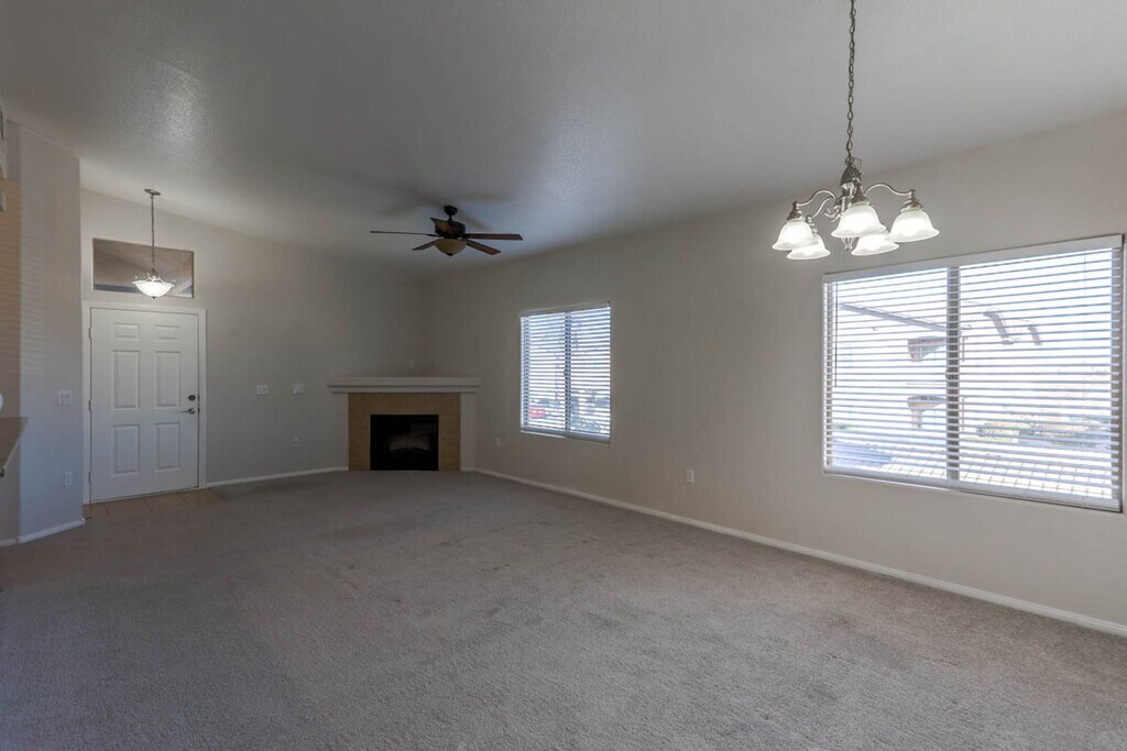 Rent includes water, sewer, and trash! Beautiful, well kept, 2 bed condo in the fantastic Southwest with a 1 car detached garage; Gated community with community clubhouse, exercise facilities, pool and spa and guest parking; Carpet throughout; Living room with ceiling fan and light, and cozy, gas, fireplace; Dining area; Kitchen with Granite countertops, breakfast bar, pantry, refrigerator and microwave; Primary suite with mirrored closet doors, ceiling fan and light, cable, double sink, and large shower; Guess suite with ceiling fan and light, cable, and walk in closet; Guest bath with double sink and tub/shower; Laundry closet with full size stackable washer and dryer; Balcony off dining area with storage closet; Convenient to the South 215, shopping, restaurants and much more!