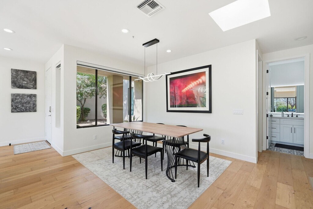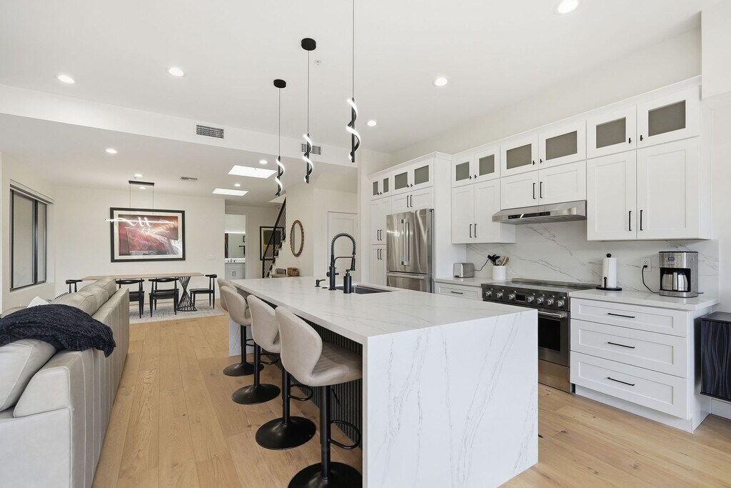 Ready for your next Luxury stay? Completely remodeled and waiting for you is this modern 3 bedroom, 3 bath residence in Gainey Ranch. The chef's kitchen is appointed with a waterfall quartz island, custom cabinetry with glass-front uppers, and RGB in and under-cabinet lighting. Professional-grade appliances elevate the cooking experience. Imported Italian porcelain beautifully frames the electric fireplace and the included 85'' OLED television. German-engineered hardwood throughout the home, brings warmth to the contemporary design. The main-level primary suite is spacious with a stunning custom bathroom including a large walk-in shower, an impressive double vanity and bidet. Upstairs you will find an additional bedroom ensuite with a walk out deck. The third bedroom is equipped with a desk and a convertible couch making it easy to get ready for guests. Outdoor living is exceptional with an oversized patio ideal for dining and relaxation, surrounded by lush, manicured landscaping. Additional highlights include an extra-length garage designed to fit two extended-length Escalades. The home is also available fully furnished and professionally decorated. Home is available NOW! Book April 2026 though October 2026 at $8000/month. Rates will increase in November 2026. $200 utility cap. 30 day minimum