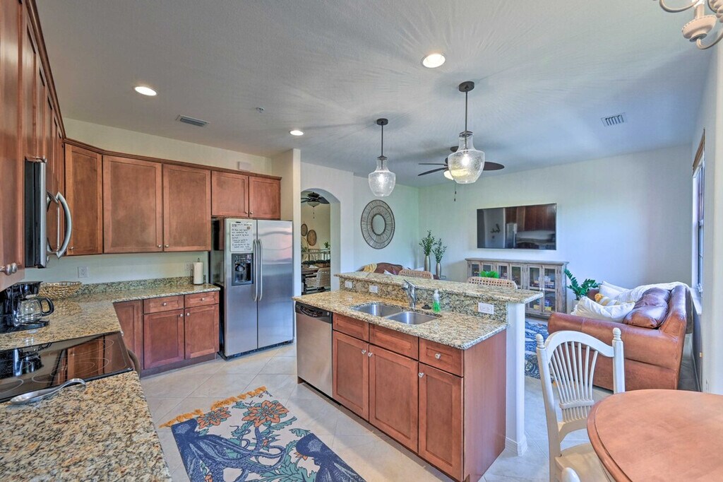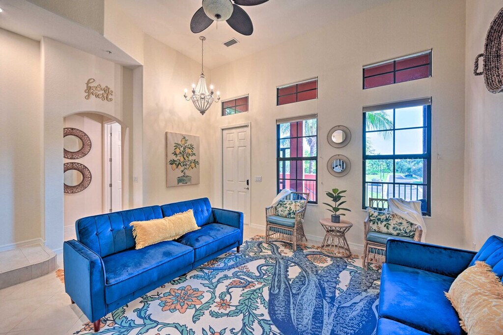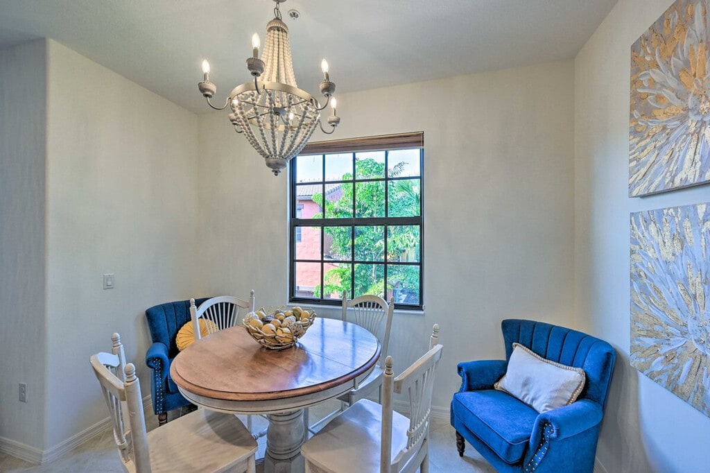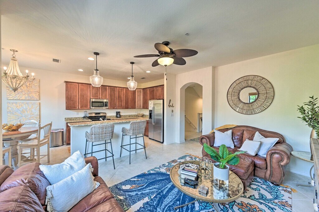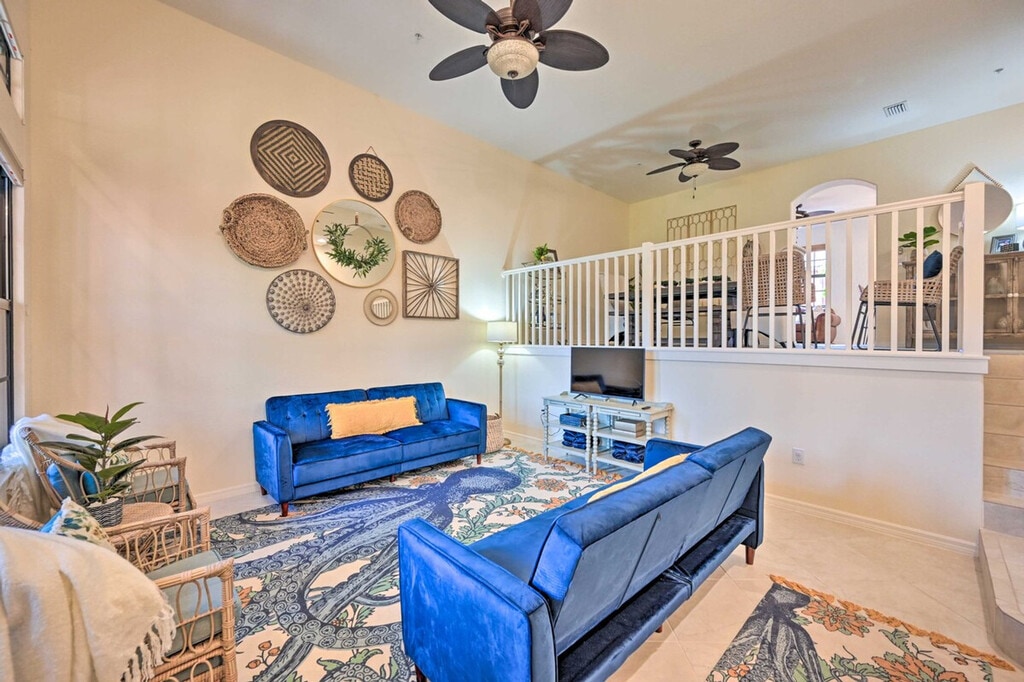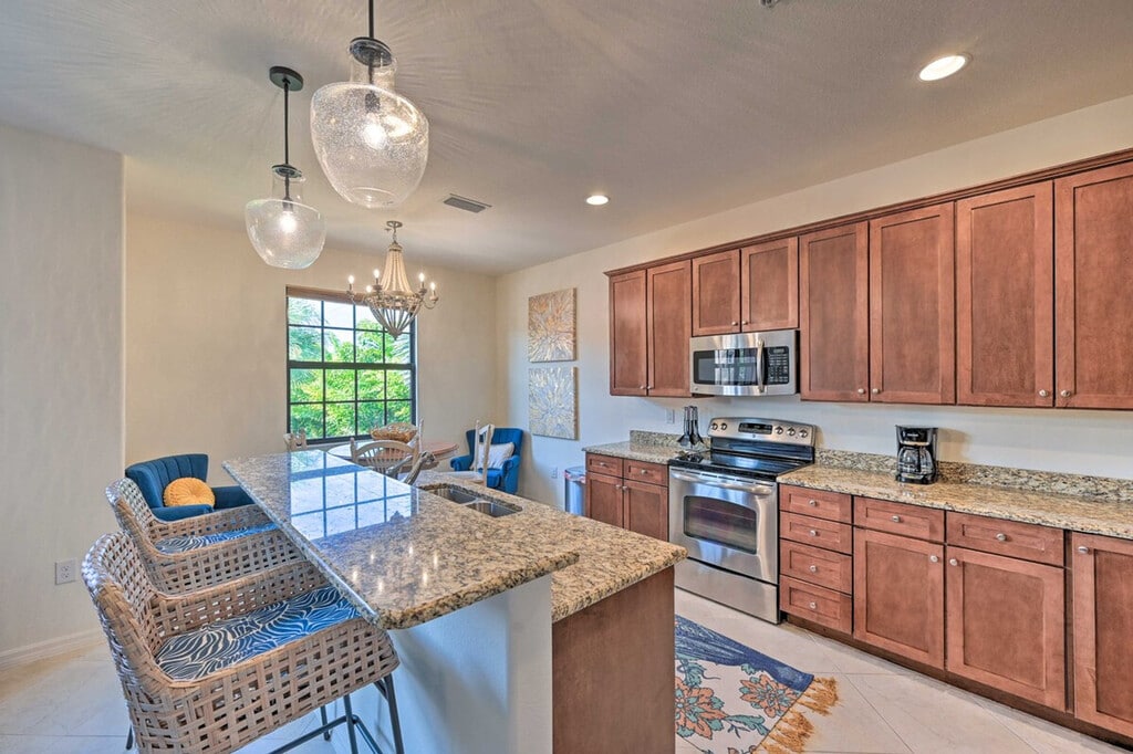 Make this cozy and vibrant Naples townhome your relaxing retreat! With 3 bedrooms and 2.5 bathrooms, this vacation rental offers 2 inviting living rooms with Smart TVs and access to community tennis courts and pools, ensuring an unforgettable extended stay. Located just 11 miles from Naples Beach and Downtown Naples, you can easily explore Marco Island's Tigertail Beach or enjoy shopping and dining in Downtown Naples. Don't miss golfing at Lely Resort or a daring adventure into the Everglades! This lovely townhome spans 2,008 square feet and offers free WiFi. Surrounded by palm trees and sandy beaches, it provides a relaxing atmosphere with numerous community amenities. The bedrooms feature king-size beds, and the living room includes 2 futons. Enjoy the screened patio and balcony, beach chairs, bicycles, and pool toys. Inside, you'll find 5 Smart TVs with cable/satellite, 2 dining tables, board games, and ceiling fans. The fully equipped kitchen boasts stainless steel appliances, a microwave, toaster oven, drip coffee maker, cooking basics, and a kitchen island with 2 stools. Parking is available with a garage for 1 vehicle and lot parking for another, along with additional street parking. Palm trees, sandy beaches, and amazing sights and sounds await your monthly stay at this relaxing townhome just outside of Naples. Located 11 miles from Naples Beach and Downtown Naples, you can explore Marco Island's Tigertail Beach or enjoy endless shopping and dining in Downtown Naples. Golfing at Lely Resort and adventures into the Everglades are also within reach. The property requires access only by stairs and may be difficult for guests with limited mobility. It is located next to a busy street, so guests should expect some road noise during their stay. Smoking, pets, and events or large gatherings are not allowed. Guests must be at least 25 years old to book, and additional fees and a tenant evaluation process are required due to HOA regulations. The townhome includes a business center, making it remote work-friendly with free WiFi and keyless entry for convenience. [SI]