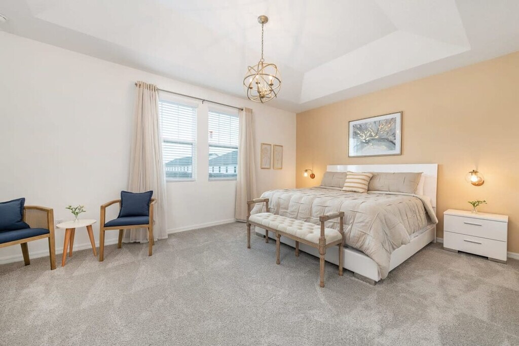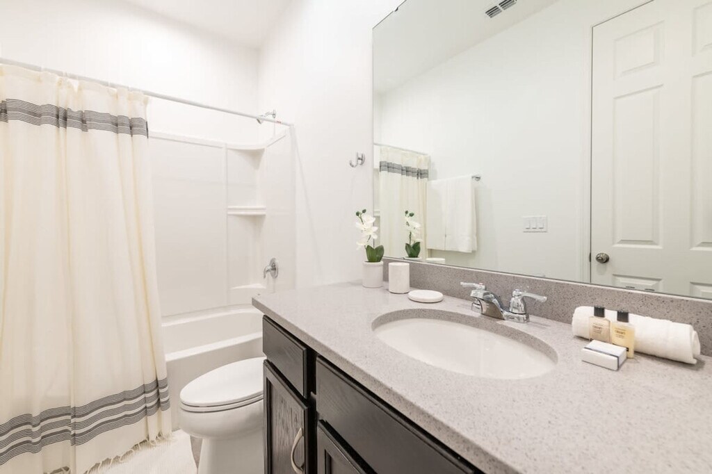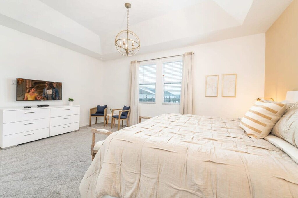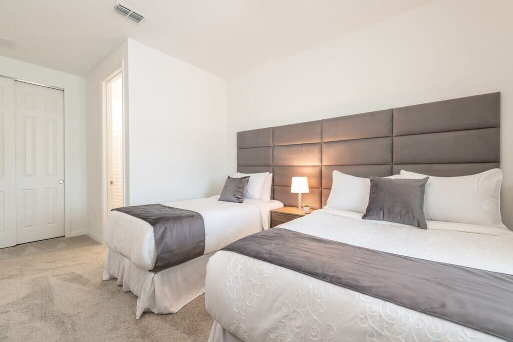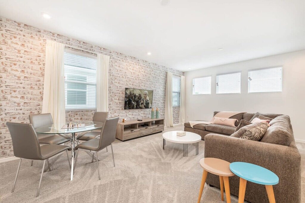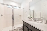 Indulge in vacation luxury at this 7-bedroom Solara Resort home. Immerse yourself in comfort with exquisite décor, a private pool, and spacious interiors. The Super Clubhouse offers heated pools, a surf simulator, and more for family fun. Explore diverse dining and sports courts, and let your dream vacation begin. Step into this spacious and exquisitely decorated 7-bedroom, 6-bathroom Solara Resort home, thoughtfully designed for your comfort. The first floor offers an open-concept living area, seamlessly blending the generous living room, dining area, and fully equipped kitchen for relaxation and dining. Step outside to your private heatable pool on the great patio, the epitome of enjoyment. The first floor also features a king master suite for convenience and privacy, along with a bedroom hosting a double and a single bed, complete with its own bathroom. On the second floor, you'll discover a stunning family room designed for gatherings, accompanied by a second king master suite and five charmingly decorated bedrooms. One queen bedroom shares a bathroom with a bedroom featuring two single beds, while another bedroom offers a double and a single bed, and the last one hosts two single beds. For added convenience, a laundry room with a washer and dryer is at your service. Stay seamlessly connected with complimentary Wi-Fi, park with ease, and find a welcome kit brimming with essential amenities to ensure a comfortable start to your vacation. This spacious, beautifully themed, and impeccably appointed home at Solara Resort guarantees a memorable stay for you and your guests. Heating the pool is a paid service and there is also a fee charged to use the barbecue grill. Solara Resort in Kissimmee epitomizes the ultimate vacation destination. Nestled in the heart of Orlando's renowned attractions, this resort offers a prime location for an unforgettable escape. The resort boasts a wealth of amenities, including a magnificent Grand Clubhouse with fitness facilities, game rooms, and comfortable lounges. Solara's centerpiece is its expansive water park, featuring a heated pool, surf simulator, and splash pad for endless family fun. Dining options cater to all tastes, from casual to upscale, ensuring your culinary desires are satisfied. For outdoor enthusiasts, the resort offers basketball courts, sand volleyball, and a soccer field. Tranquil spots like walking trails, lakes, and lush gardens provide relaxation amidst the excitement. With gated entry and 24/7 security, safety is paramount. Nearby, you'll find shopping outlets and dining options, making Solara Resort a haven for both adventure seekers and those seeking relaxation. Discover the magic of Orlando at Solara Resort in Kissimmee. Quiet hours are between 22:00 and 8:00. [SI]