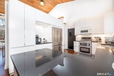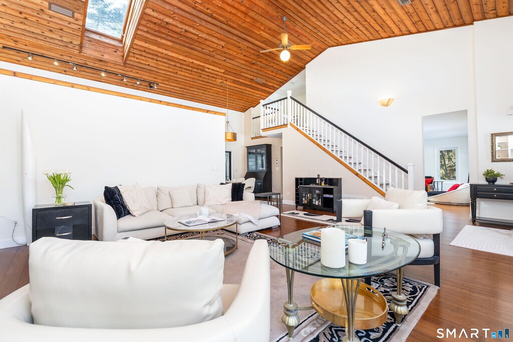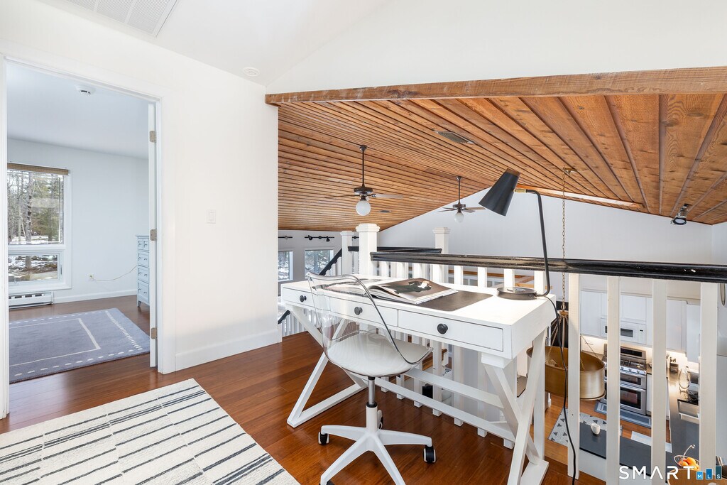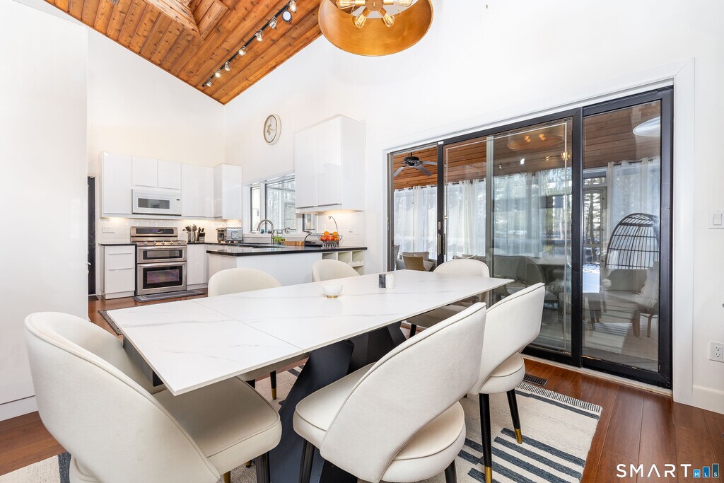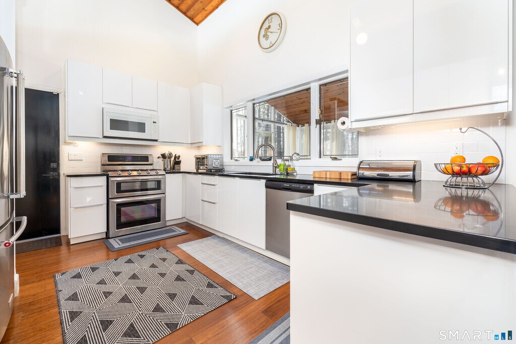 Call for Availability - Welcome to 9 Belshyre Court, a three-bedroom, two-bathroom home tucked away on a quiet cul-de-sac at the end of a scenic driveway in beautiful Woodridge Lake, Connecticut. This charming mid-century contemporary rental offers the perfect blend of privacy, relaxation, and leisure. Upon entry, you are welcomed into an inviting living room featuring soaring cathedral ceilings, hardwood floors throughout, and the warmth of a propane fireplace. The modern kitchen is well-appointed with abundant granite counter space for cooking and entertaining, complemented by sleek European-style cabinetry. Just off the kitchen, a spacious screened-in porch creates an ideal setting for effortless spring and summer dining. Adjacent to the porch, a hot tub offers an additional retreat for relaxing in nature. The first-floor primary bedroom is filled with beautiful natural light and includes an adjoining full, modern bath. The main level also features a cozy den or media room. Upstairs, you'll find two additional bedrooms, a versatile loft perfect for a home office, and another full bathroom. Additional highlights include a whole-house generator, central air conditioning, and an energy-efficient propane furnace. Truly a gem in the Woodridge Lake community. MLS# 170623443