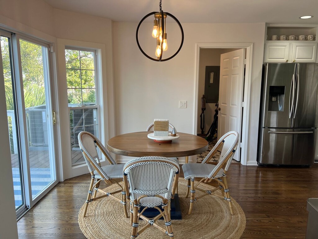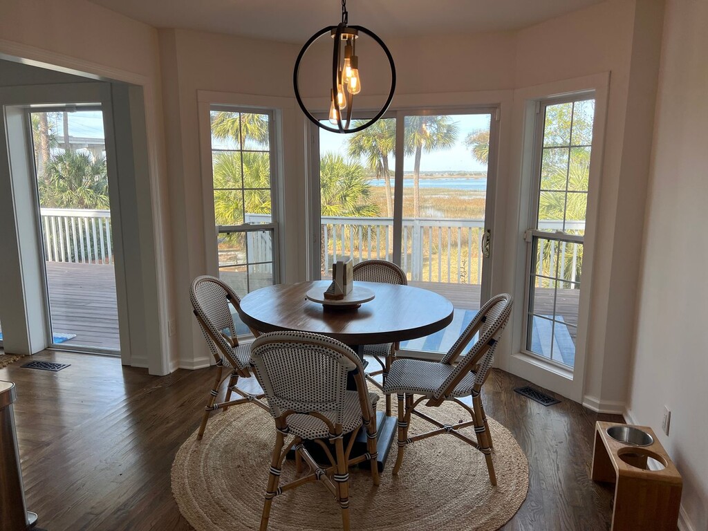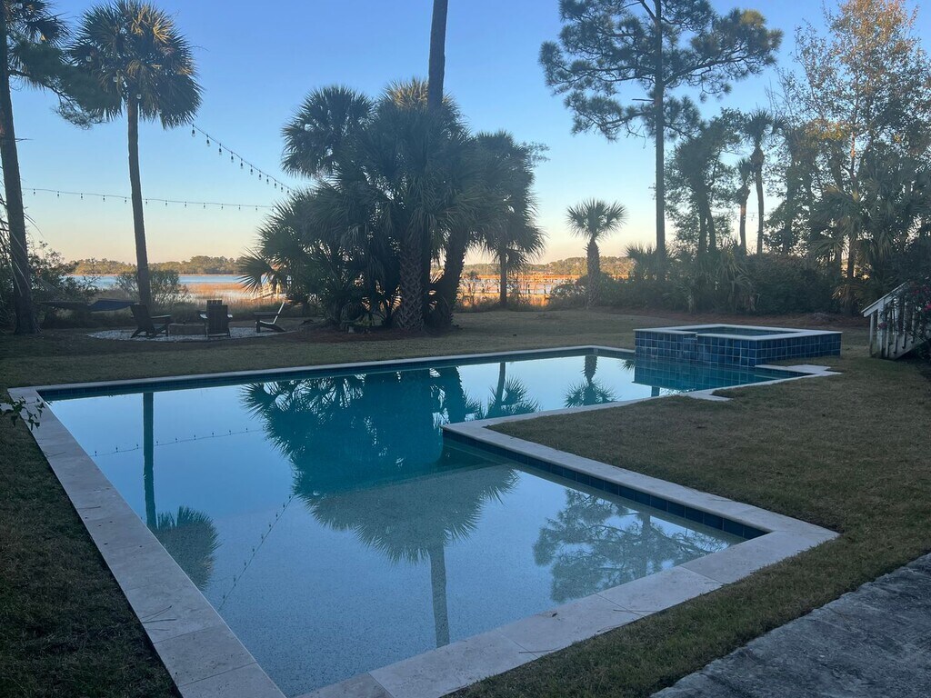 You don’t want to miss this beautiful furnished home on HHI! Located in the quaint neighborhood of Blue Heron Pt near Windmill Harbour. This home features ample outdoor space with two large decks, spectacular views, a private pool, three bedrooms, an office, beautifully renovated kitchen, and incredible natural light. The primary bedroom is on the main level, with access to the back deck, a walk in closet and an updated bath. The two guest bedrooms are located upstairs with ample closet space and a shared bath in the hallway. No cats permitted. A dog would be considered on a case by case basis with owner approval and a pet deposit. Tenant responsible for utilities, trash service, propane, and landscaping. Pool maintenance and pest control included. Application fees are non-refundable. 12 mo lease term minimum.