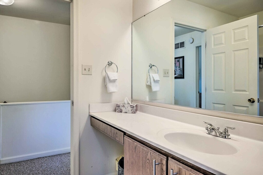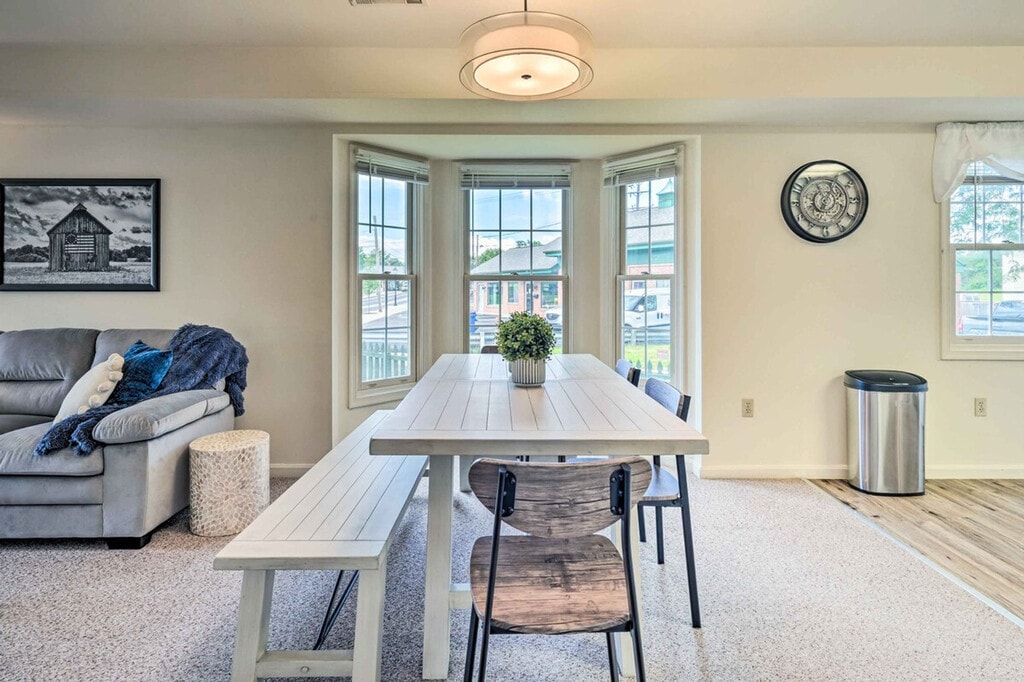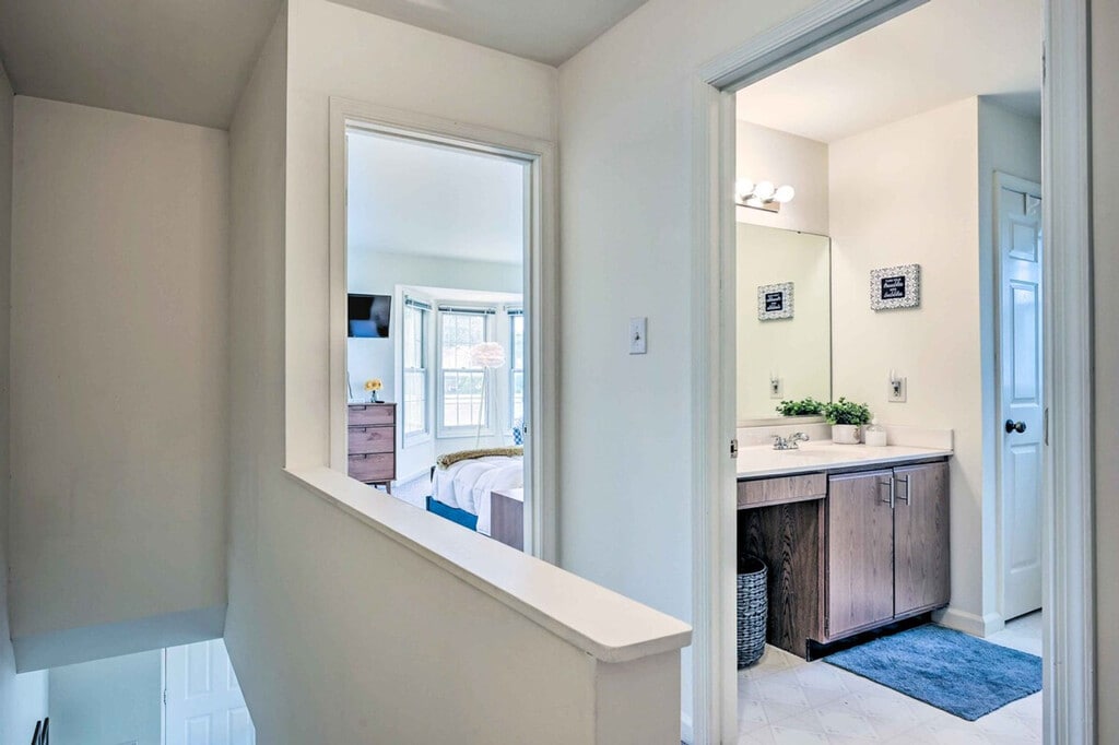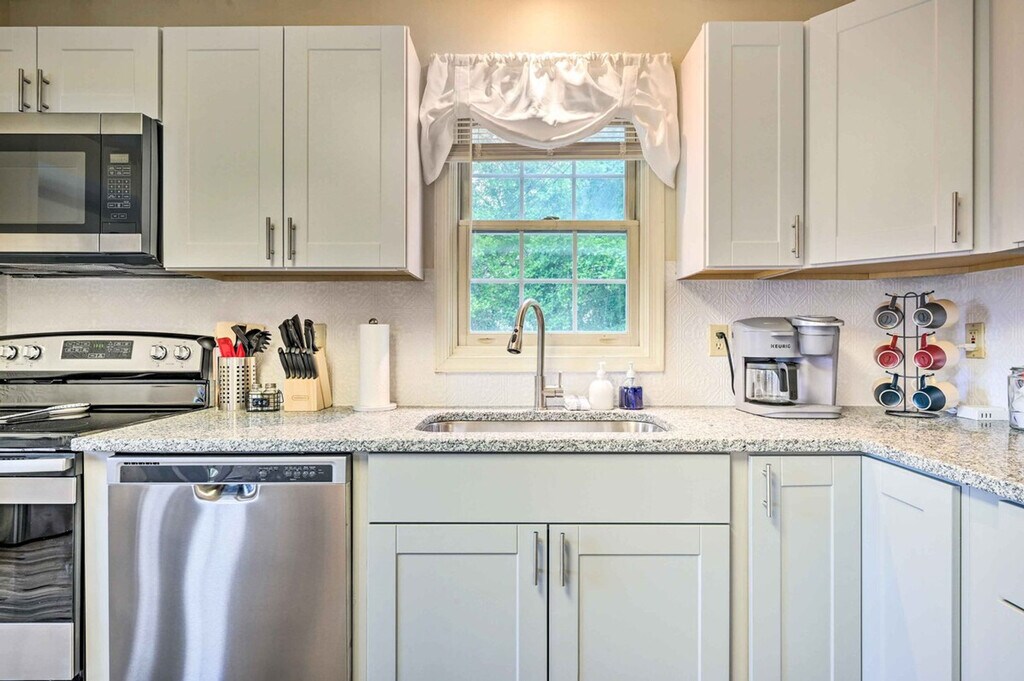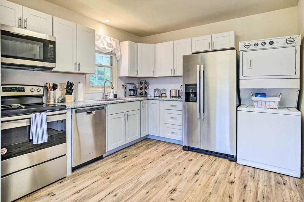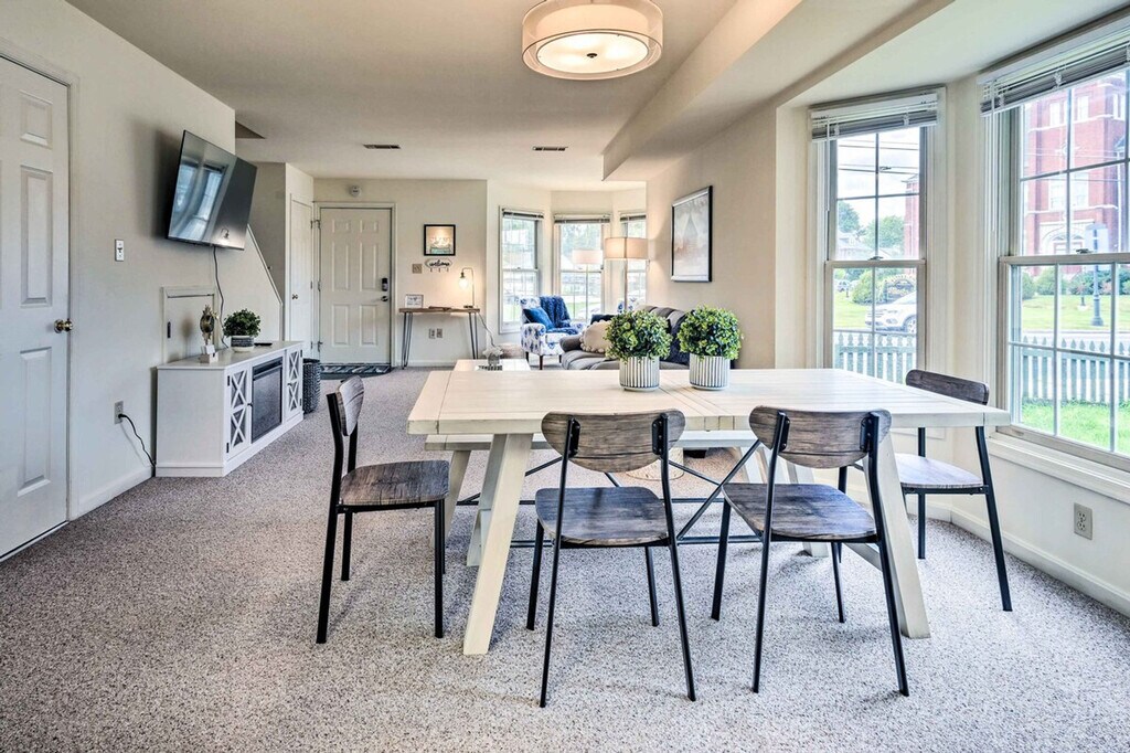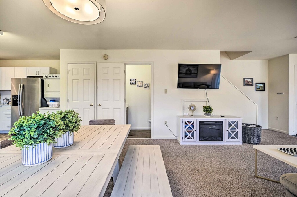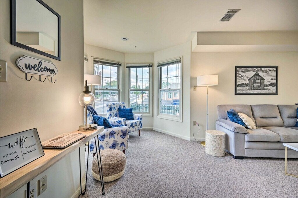 Feel at home in this classic Gettysburg townhome, conveniently located near downtown and must-see historic sites. This 2-bedroom, 1.5-bathroom townhome requires climbing 3 exterior stairs for entry, and all bedrooms are located on the second floor, requiring an additional flight of stairs for access. Admire the updated interior and modern decor of this townhome. The fully equipped kitchen is perfect for whipping up brunch. This home features a laptop-friendly workspace, dining table, shared backyard, 2 smart TVs, and board games. The kitchen includes a dishwasher, electric stove/oven, refrigerator, microwave, cooking basics, dishware and flatware, coffee maker, and toaster. Enjoy free Wi-Fi, central air conditioning and heating, complimentary toiletries, linens and towels, in-unit laundry, a hair dryer, hangers, an iron, and keyless entry. Alley parking is available for 1 vehicle. This home provides the perfect quiet yet convenient location for exploring the Gettysburg National Military Park or going on a guided tour. Whether you’re here for the history, local charm, or iconic eats, you'll find it all nearby. Guests must be at least 25 years old to book. No pets, events, parties, or large gatherings are allowed. [SI]