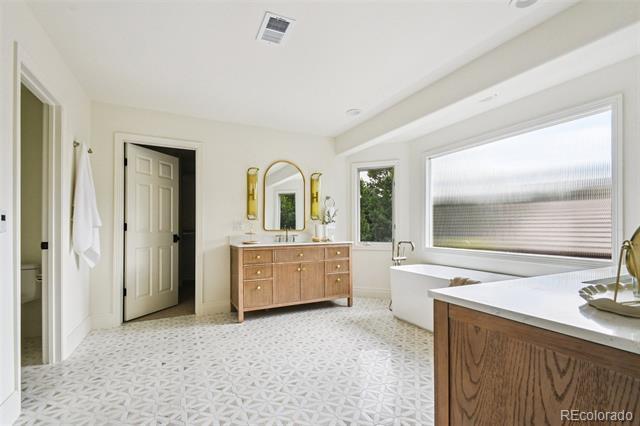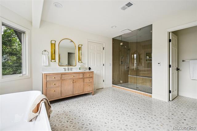 Welcome to 9 Covington Drive, set within the heart of the intimate Covington neighborhood. Step inside and you’re greeted by natural light, warm textures, and designer finishes that catch the eye at every turn. The main floor is anchored by a stunning open flow kitchen, showcasing rich wood tones, custom cabinetry & range hood. The kitchen boasts Wolf & Miele appliances, quartzite counters, a hidden pantry, and cozy breakfast nook leading into the sun-drenched living room. A moody executive office with a lounge area & bar offers the perfect setting for business meetings or evening cocktails. Upstairs, the primary wing is designed for relaxation with a private sitting area, limestone fireplace, & balcony overlooking the backyard. The ensuite bathroom features heated floors, a his & hers shower, and generous walk-in closet. Just down the hall, three additional bedrooms each offer built-in study nooks, walk-in closets and designer ensuite baths. The lower level is made for entertaining, with a spacious recreation lounge, full wet bar, & game area. Around one corner, a boutique fitness studio awaits, while another leads to an additional guest bedroom. Backing to the peaceful High Line Canal Trail, 9 Covington Drive embodies the Vision Design Build approach, where timeless design and elevated living harmonize with nature’s serenity www.vision- Single Family Residence MLS# 6800523
