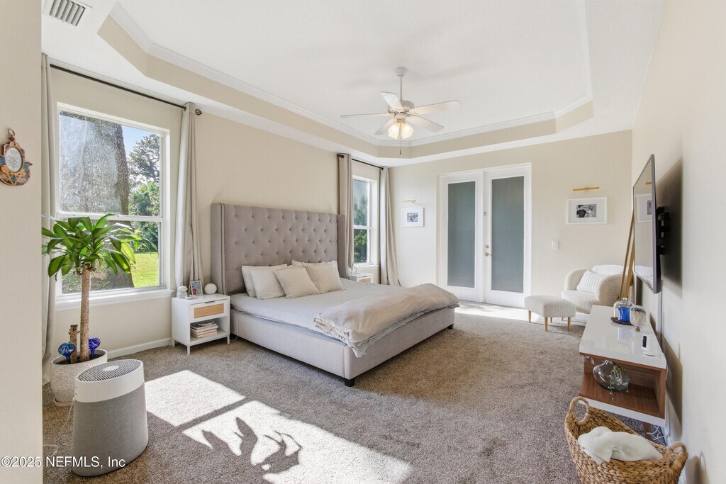 Spacious 4 Bedroom,4 Bathroom home with a 3-car garage and an expansive private backyard a true gem in the sought-after gated community of Grand Haven. This stunning residence offers a formal living room,separate dining room,and a huge kitchen featuring a center island and breakfast bar perfect for entertaining family and friends. The primary suite is a retreat of its own with a massive walk-in closet featuring built-ins and a luxurious spa-style bathroom with dual vanities,a makeup area,soaking tub,and a large walk-in shower. A separate guest wing includes its own family room,ideal for a playroom or office,while the upstairs suite makes the perfect in-law suite,man cave,or guest quarters. Enjoy outdoor living on the large covered porch overlooking one of the most private backyards in the community. Located just a short walk to Creekside's resort-style pool,fitness center,and game room,and minutes from the Intracoastal Waterway and scenic walking trails. MLS# 2118046