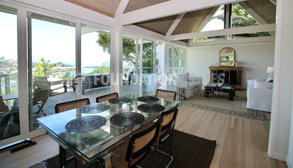 Honored by the American Institute of Architects and Sunset Magazine, this architectural gem seamlessly blends design with its natural setting. Nestled on a serene street surrounded by curated gardens, it offers a private retreat with sweeping views of Belvedere Cove, the yacht harbor, Angel Island, Raccoon Strait, and beyond. A spacious entry deck leads into the main level with kitchen, dining, and living areas, along with a versatile family room or office featuring a fireplace, loft, built-in desk, and full bath—flexible enough to serve as a 4th bedroom. The living-dining space is filled with natural light from glazed gables and soaring vaulted ceilings that peak at 20 feet, while a wall of glass frames ever-changing Bay panoramas. The lower level includes the primary suite with a walk-in closet, ensuite bath, and direct deck access. Two additional bedrooms and a full bath complete this level. Designed for indoor/outdoor living, this rare Belvedere residence celebrates both architecture and nature. A unique opportunity to own an award-winning home at an exceptional value. Available mid-November for 6-12mo lease. If you have any specific questions about this property, please call or text Khristine Castillo at . Sign up to get HOT new rental listings from our team direct to your inbox each week!! NOTE: Application Criteria includes 700* or higher FICO score for all applicants. Review all application criteria here on our APPLY NOW link: *Voucher holders see our website for special credit and income terms ANIMAL POLICY: Pet may be considered on a case-by-case basis for qualified applicant(s) unless otherwise noted. Assistive animals are always permitted and are approved with legal documentation. Individual terms may vary based on property owner; pls inquire. ADDITIONAL TERMS: No smoking. Please expect a $55.00 application processing fee per adult. Renter's Liability Insurance required. -------> Also available: Members-Only Access to Private Listings "COMING SOON" Pocket List: Foundation Homes: Performance Built Property Management for Results Driven Investors. Listed By: Christopher Barrow, Broker + Team Foundation Homes Property Management Leasing ~ Management ~ Sales ~ Investments DRE #01885922 ****AUTOMATED SHOWING INSTRUCTIONS:***** Please use the following link to view available times and request an appointment 24/7 online: -OR- - Automated Schedule Request Hotline - 24/7 - New Client Inquiries Need to talk to us? Please call ext 8 for our awesome receptionists. Please call during normal business hours M-F for fastest response! AGENTS/BROKERS: If listed on MLS, please consult agent instructions for showing/application instructions. Cooperating compensation varies by listing and is offered only as published, thanks for understanding. Our agency will handle all applications, credit reports, and lease paperwork! PROSPECTIVE RESIDENTS: Tired of management companies that don't call you back? When renting a home professionally managed by Foundation Homes, you'll enjoy a convenient online resident portal, easy rental payment options with 24/7 emergency response and a friendly staff. We sponsor monthly exclusive resident activities + curated giveaways. We have a concierge utility set up service. We also have a Buyers Program if your ultimate goal is to buy a home. Plus, we call you back. How great is that? INVESTORS: Ready to live the toes-in-the-sand lifestyle when you get LEVERAGE with professional property management? If you’re still trying to DIY manage your property, we’re in a rapidly changing legislative environment filled with risk for California Property Owners. Don’t undervalue your asset with discount or DIY property management that can cost you money, lose you a great tenant, and get you into legal trouble quickly. We're performance built and results driven and can help deliver the BEST tenants and protect your asset in a changing market. Contact our office today to learn how we can help you: ext 1. This property is offered for lease ONLY by Foundation Homes. Please look carefully at all email addresses and phone area codes. If you feel that you are not dealing directly with us or a member of our staff, please call us immediately at our published phone number and we will be happy to verify you are dealing with the correct person who represents this property. If there are terms or requirements that are mission critical to you in renting this property, you are responsible for verifying before leasing the property. The property owner is only responsible for the terms in the lease. Sometimes popular syndication sites publish inaccurate rental info without our knowledge. We're responsible for ads on our website only; we can't offer the same guarantee of accuracy for any of our ads syndicated on other sites. Any question please call Thanks for being a savvy consumer!