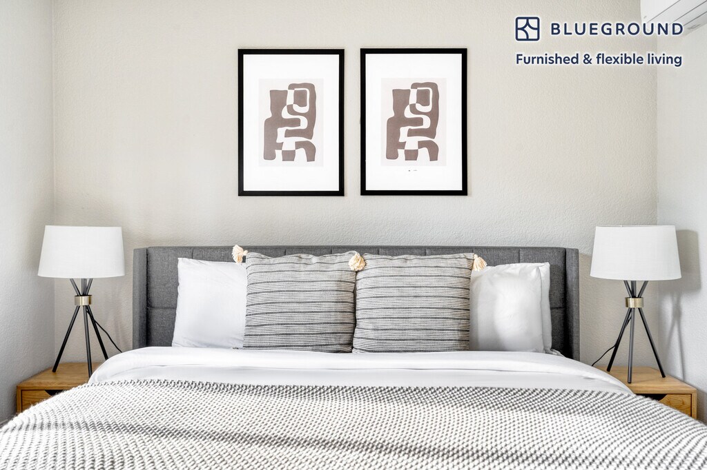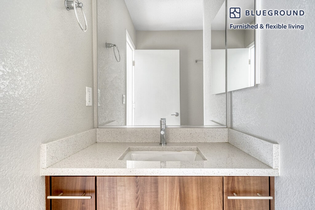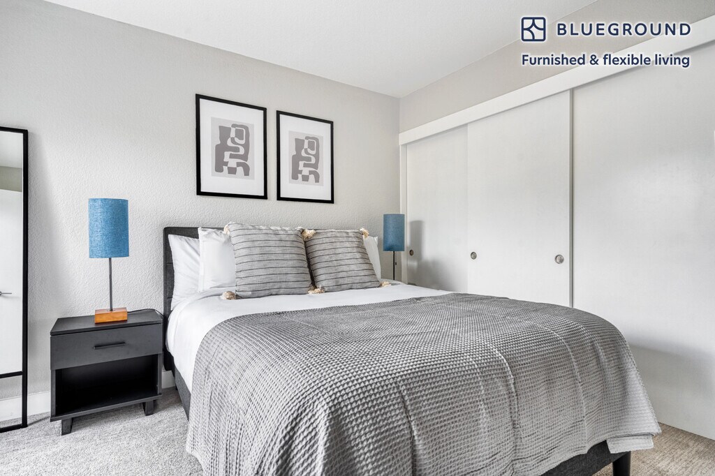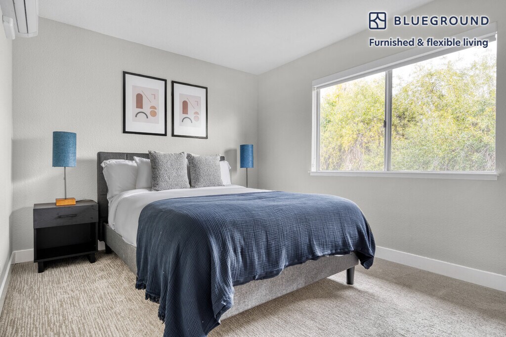 Feel at home wherever you choose to live with Blueground. You’ll love this spacious Mountain View furnished three bedroom apartment with its modern decor, fully equipped kitchen, and cheery living room. Ideally located, you’re close to all the best that Mountain View has to offer! (ID #SFO843) The advertised rate of $4,610/month is the lowest available price, based on a 5 month(s) and 28 day(s) stay with a move-in date of August 29, 2026. If you’re looking for a 1-year stay, the rate is $5,320/month. Rates vary depending on the duration of stay, season, and other parameters. For exact pricing and additional pricing components, please visit our website and enter your desired move-in and move-out dates. The rate is applicable when billed upfront; it can be higher if billed in multiple payments. Brokers are welcome to reach out. Were you looking for an unfurnished lease? Try Blueground instead and upgrade from unfurnished to furnished living: - Furnished at rates comparable to unfurnished - No setup or furniture costs - save thousands - Move-in ready - save time, just bring your suitcase Designed with you in mind Thoughtfully designed with bespoke finishes, modern furnishings, and a fully equipped kitchen, you’ll enjoy that “I’m home” feeling with this Blueground apartment. Whether you’re lounging in your cozy living room streaming the latest and greatest entertainment on the smart TV or premium wireless speaker, or getting some well-earned rest on the superior quality mattress with luxury linens, you’ll fall in love with everything this Mountain View apartment has to offer. This apartment also offers in-apartment laundry. Sleeping arrangements King Bed, 70.8in/180cm Queen Bed, 63in/160cm Queen Bed, 63in/160cm Amenities Building amenities unique to this three bedroom apartment include an on-site: - Dryer - Swimming pool - Washing machine - Parking - Pets allowed Arrival and ongoing support The entire apartment is yours to enjoy! Throughout your stay, you’ll have access to our Client Experience team through the Blueground App. You can schedule additional cleanings, submit maintenance requests, and view our neighborhood recommendations with just a few taps. We’ll share all details upon confirmation of your stay. Ideally Located This furnished home is located in Mountain View, in Santa Clara County. It is named for the unbeatable views of the Santa Cruz Mountains. Situated in the southern end of the San Francisco Bay Area, residents enjoy the many parks, specifically Shoreline Park, which is the largest in Mountain View and includes an amphitheater and golf course. Go for a walk or run on the San Francisco Bay Trail. In addition, Stevens Creek goes through Mountain View and empties in Shoreline. A paved path for pedestrians and bikes runs alongside the creek, which is ideal for nature lovers. The nearby cities of Palo Alto, Los Altos and Sunnyvale are all easily connected by bus and rail service. Other things to note Building amenities may have an extra cost. This Blueground apartment has flexible lease options, allowing you to book it for one month, a year, or more. Pets are welcome, though weight limits and breed restrictions apply and may incur fees. Parking is offered based on availability and is subject to a fee. Please keep in mind that this is a walk up building. We take great pride in ensuring every photo displayed is shot in our own units with our actual furnishings. That said, we regularly refresh our decor and furniture arrangement, which may differ from what’s pictured. [SI]