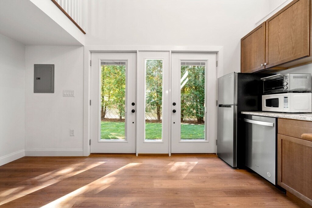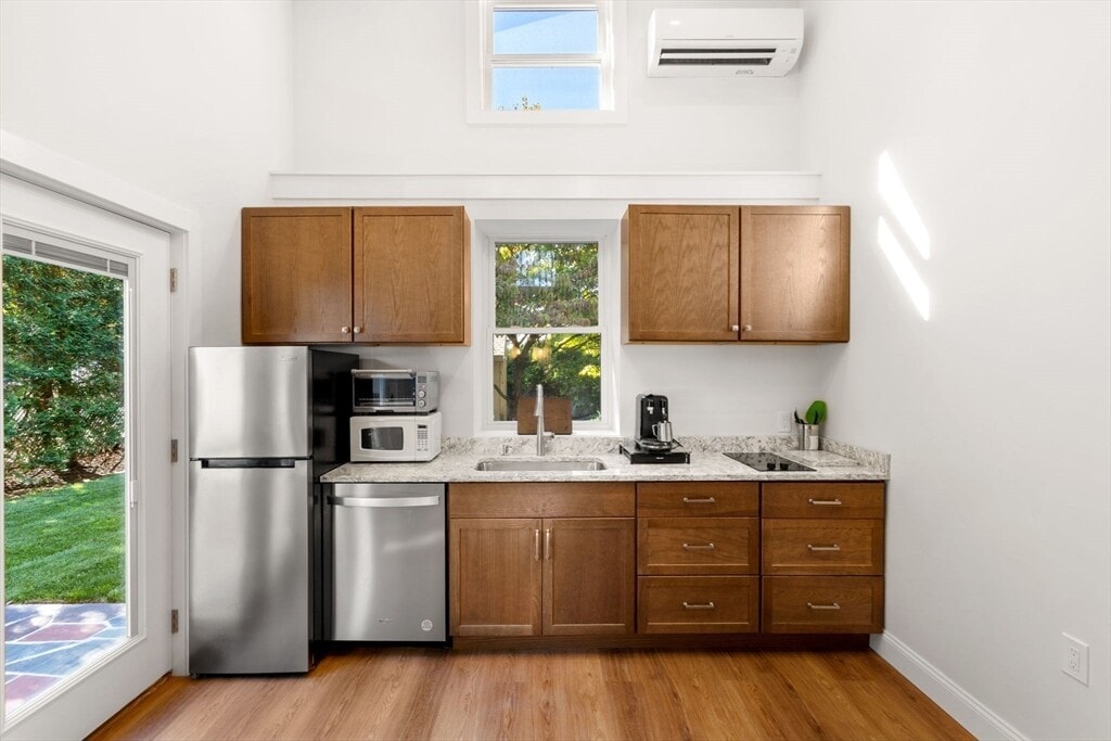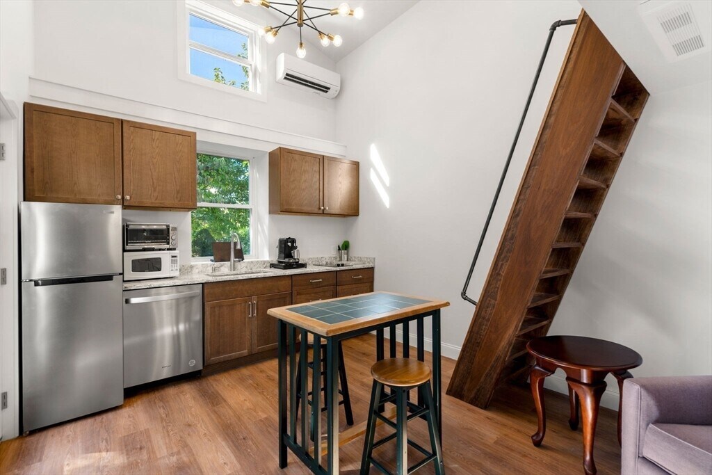 Brand new sun-drenched loft cottage in desirable Fresh Pond area offers innovative micro-living or creative workspace. This efficiently designed space soars with tall ceilings and abundant natural light. Contemporary kitchenette features dishwasher,cooktop,and thoughtful storage solutions. Airy main level opens to private patio and access to beautifully landscaped shared grounds. Elevated sleeping loft adds architectural interest and separation of space. Modern finishes throughout include premium fixtures and climate control. All utilities included. Cambridge street parking permit available. Minutes to Alewife Station,Fresh Pond trails,Whole Foods,Trader Joe's and Concord Avenue amenities. Available now for flexible lease terms. MLS# 73442747