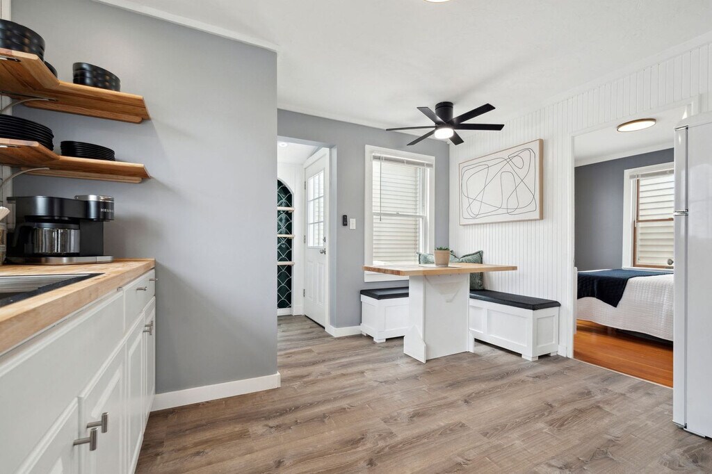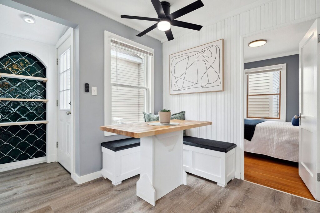 Feel at home in this newly renovated 3-bedroom home, "Blinkin Beach House," located steps from the beach at the start of the Hampton Beach "strip" and "island" section. This second-level unit is only accessible by stairs and sleeps 5. Spend your mornings and evenings relaxing on the front deck. The home features a living room with a large sectional couch and a Roku smart TV. The fully equipped kitchen has new appliances, a Keurig/coffee pot combo with coffee provided, a breakfast nook seating up to 4, and 2-person bar seating. Fresh linens and towels are provided. Enjoy the front deck with a comfortable outdoor sectional, a coffee table, an outdoor dining table seating 6, and a gas grill. Off-street parking is available for up to 1 car. This property is walkable to all main attractions on Hampton Beach. Hampton Beach is a premier resort town in New Hampshire boasting a wide variety of activities for all ages and is rated among the top 3 cleanest beaches in the U.S. This condo is minutes from The Hampton Casino venue, Blue Ocean Concert Hall, and is a short car ride from the quaint seaside towns of Newburyport, MA and Portsmouth, NH and outlet shopping in beautiful Kittery, M.E. Hampton is perfectly located for a day trip to Boston, Portland, ME and the White Mountains. A car is needed to get to the property. Be mindful of the neighbors during your stay, as quiet hours are between 9:00 p.m. and 9:00 a.m. Only 1 car is allowed in the driveway because the parking lot is shared with the neighbors. Please park in the designated parking spot as shown in the listing’s photo. No pets are allowed. You must be at least 25 years old to rent. Registration Number: 104606 [SI]