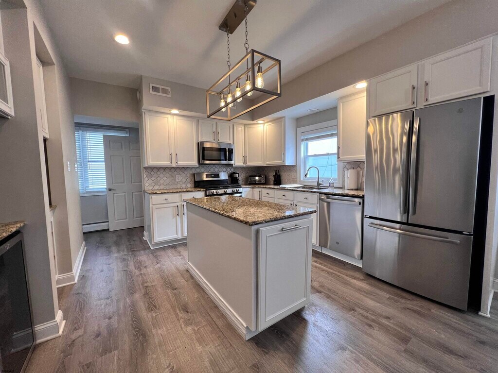 FIRST BLOCK NORTH WINTER RENTAL!! BEAUTIFULLY RENOVATED with 4 bedrooms, 2 full baths, fabulous front deck, and yard! Gorgeous kitchen with center island and dining area makes entertaining your friends and family a breeze! Beautiful new appliances including a beverage cooler! Large master and 3 other generously sized bedrooms makes room for the whole family. FABULOUS LOCATION CLOSE TO MARGATE AND STEPS TO THE BEACH AND BOARDWALK!! Walk to fabulous eateries and ice cream shops. Don't let this one go...CALL TODAY!!