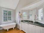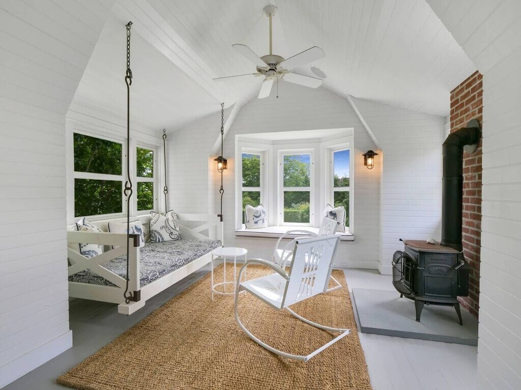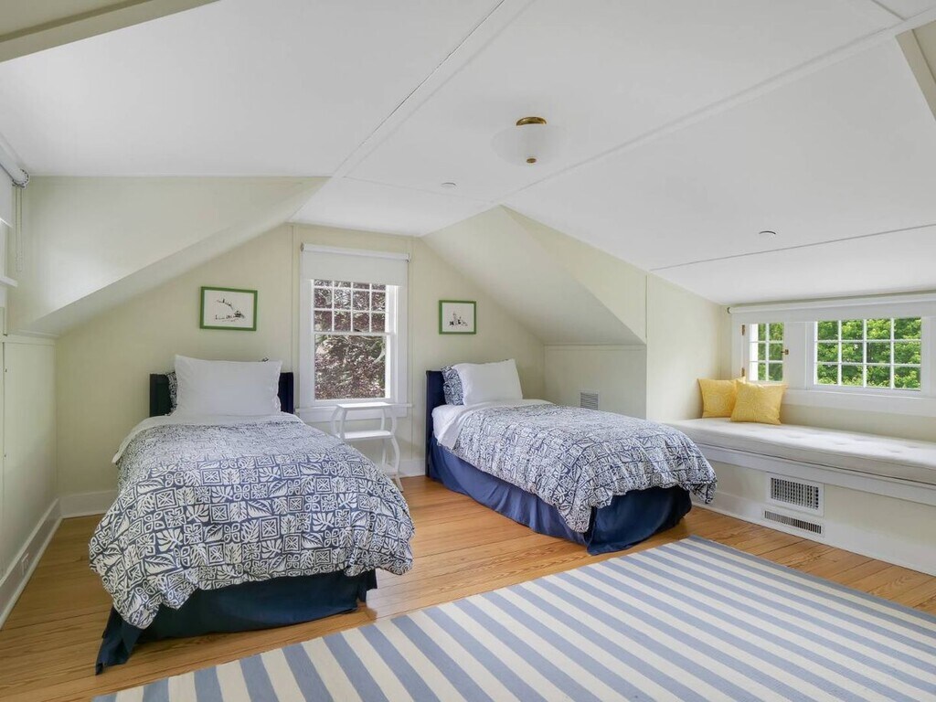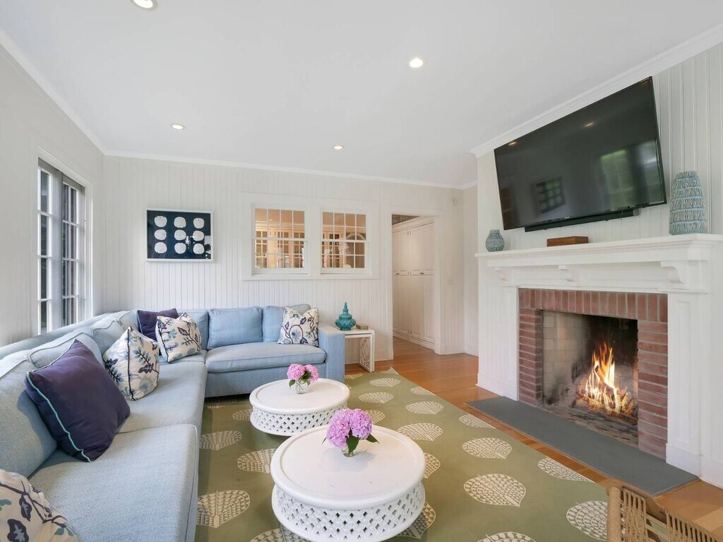 Fully renovated, exquisitely decorated 6 BR/3.5 BA in Quogue Estate section available for last two weeks summer and full off-season. Features include an airy great room with fireplace, 4-season enclosed porch, formal dining room, family room, eat-in kitchen with outside eating area. Upstairs, the primary bedroom has its own sleeping porch and spacious master bath; 2nd floor also has 3 guest bedrooms and another full bath. Third floor has two more spacious bedrooms, a full bath, and a private staircase down. Outside are lovely lawns, a garage with playroom (ping-pong, TV, etc) and an office space, outdoor shower, and a brand-new heated gunite pool with spa.