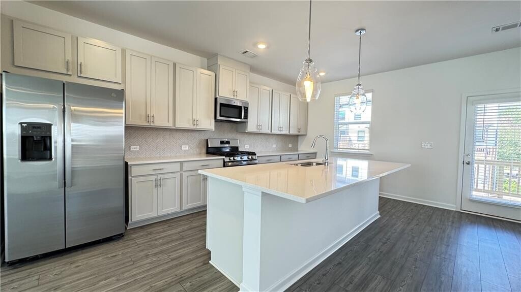 Move-In Special: $500 bonus ~ 12,16 or 18-month lease END UNIT~ Brand New Construction ~ This stunning new end-unit townhome offers 4 bedrooms,3.5 bathrooms,and stylish modern finishes. The lower level features a private bedroom with ensuite bath,perfect for guests or an in-law suite,along with a bright entryway,Ring camera,Schlage-keyless entry for added convenience. The main level boasts a gourmet kitchen with a large island that seats 4,a walk-in pantry,and brand-new stainless-steel appliances,including refrigerator,washer,dryer,and gas range. A spacious dining area easily accommodates a table for eight,and the open-concept family room with electric fireplace overlooks a beautiful courtyard and green space. You have so much natural light,as an end unit has extra windows on the side and you have a wall of windows overlooking the courtyard. Upstairs,the master suite includes a double vanity and tile surround shower. The laundry room with washer and dryer is located on the same floor,along with two additional guest bedrooms and a shared bath. Large windows throughout the home fill every level with natural light. Located just steps from Downtown Lawrenceville and The Lawrenceville Lawn,you’ll enjoy access to shops,restaurants,free concerts,and family-friendly events. Nearby Rhodes Jordan Park offers 162 acres of nature,a lake,and nearly two miles of walking trails. Rental criteria include verifiable income of three times the rent,excellent rental history,and no late payments on credit in the past two years. Pets are considered on a case-by-case basis. Don’t miss this opportunity to make a brand-new townhome your next home. Schedule your showing today!
