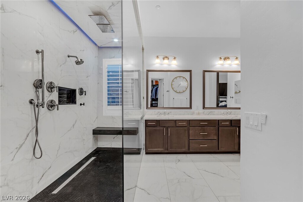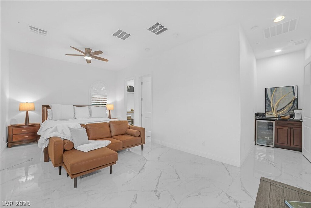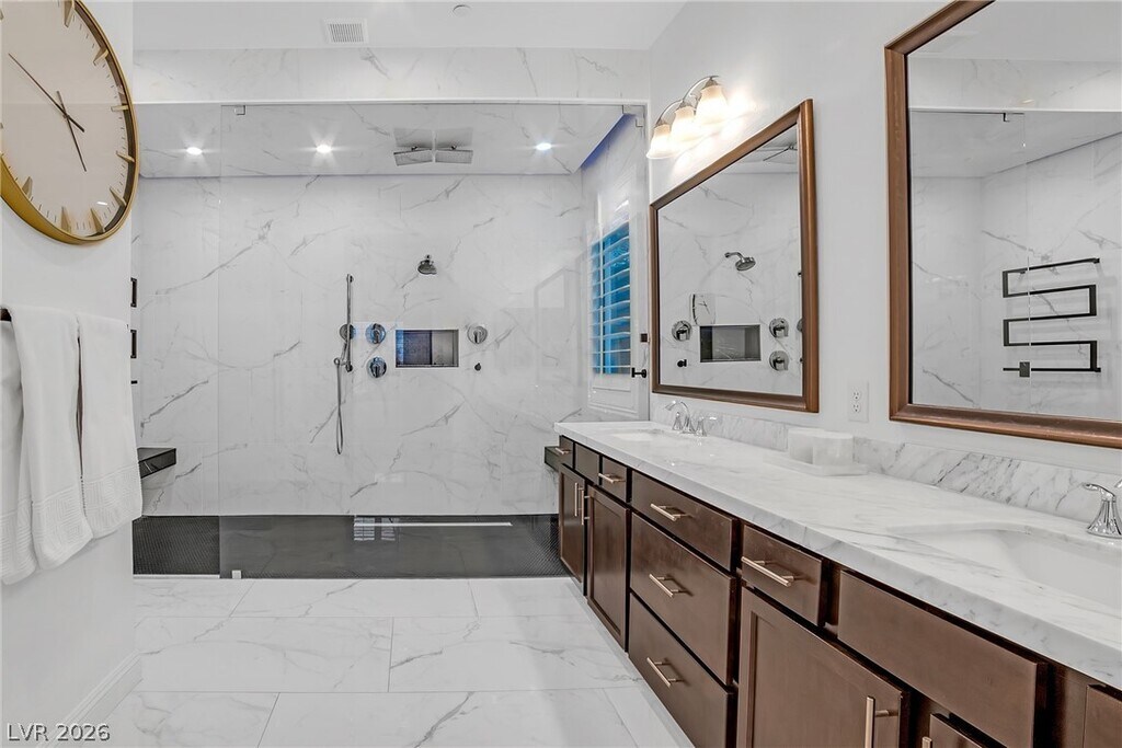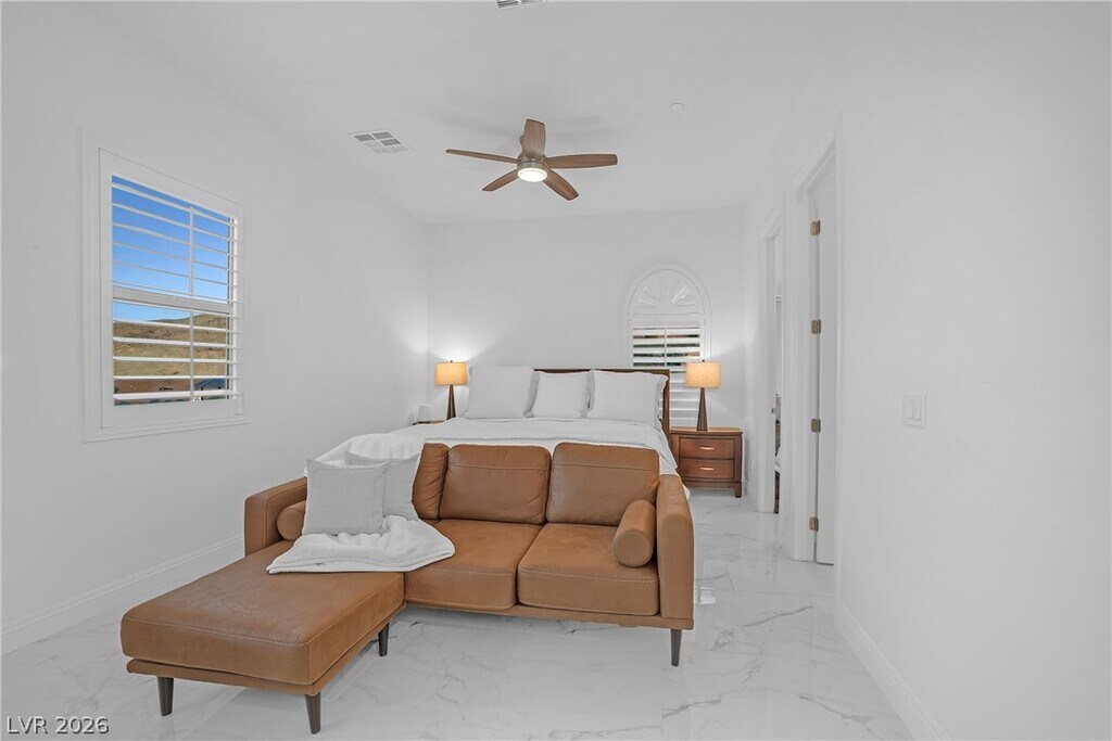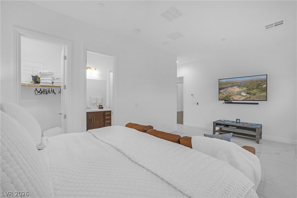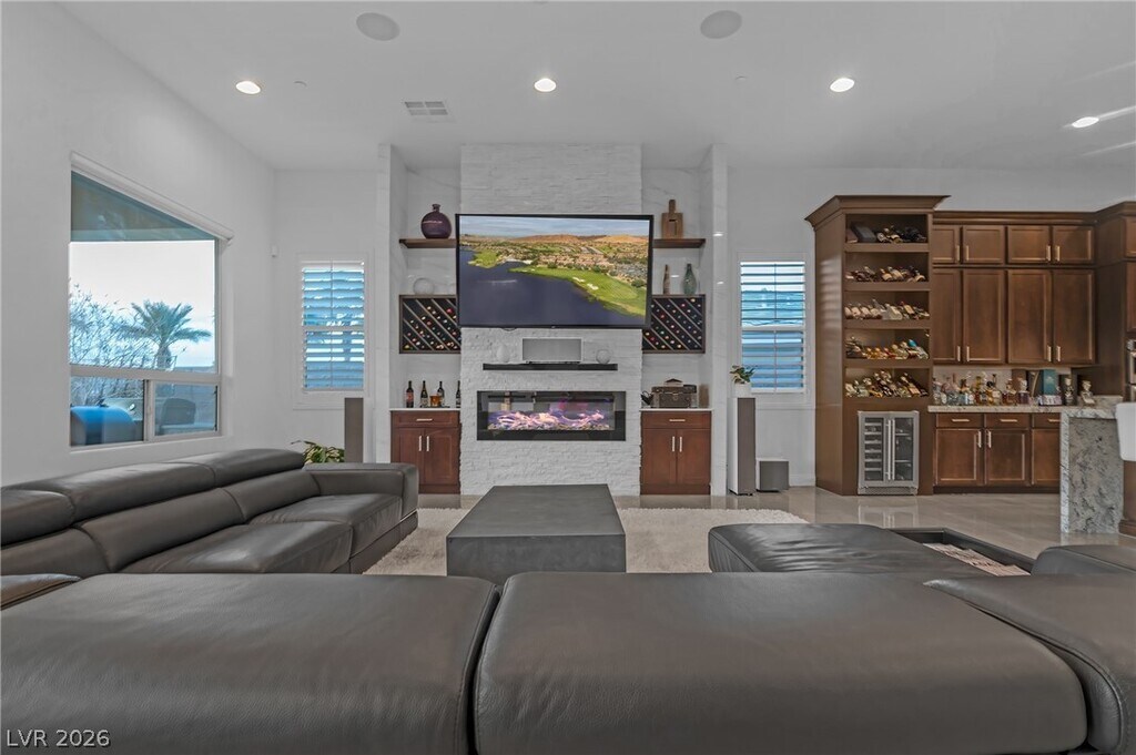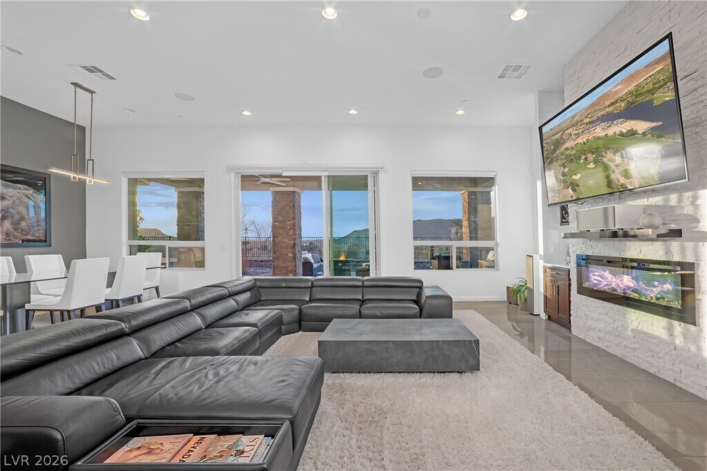 Fully furnished luxury rental in Lake Las Vegas available for 6 months or longer, located in a private gated community with Strip and mountain views. This single-story fully furnished home features an office plus 3 spacious bedrooms, each with en-suite baths and large walk-in closets, offering comfort and privacy throughout. The open-concept layout includes marble tile flooring throughout, tall ceilings, and large windows that fill the home with natural light while showcasing the beautifully landscaped yard. The kitchen features a waterfall island, tall custom cabinetry, and modern finishes, perfect for entertaining. Step outside to a fully landscaped backyard with a fire pit and incredible views, ideal for relaxing or hosting guests. Conveniently located near Village shops, dining, and the entrance to Lake Las Vegas, this home offers the perfect blend of luxury, lifestyle, and convenience, fully furnished move-in ready luxury.