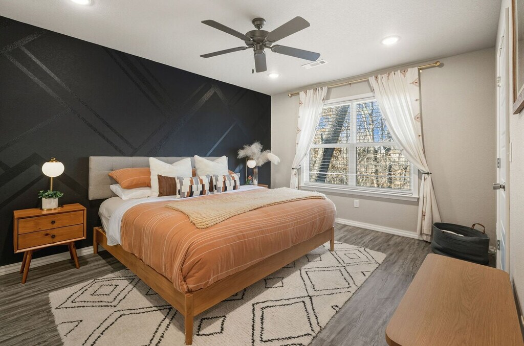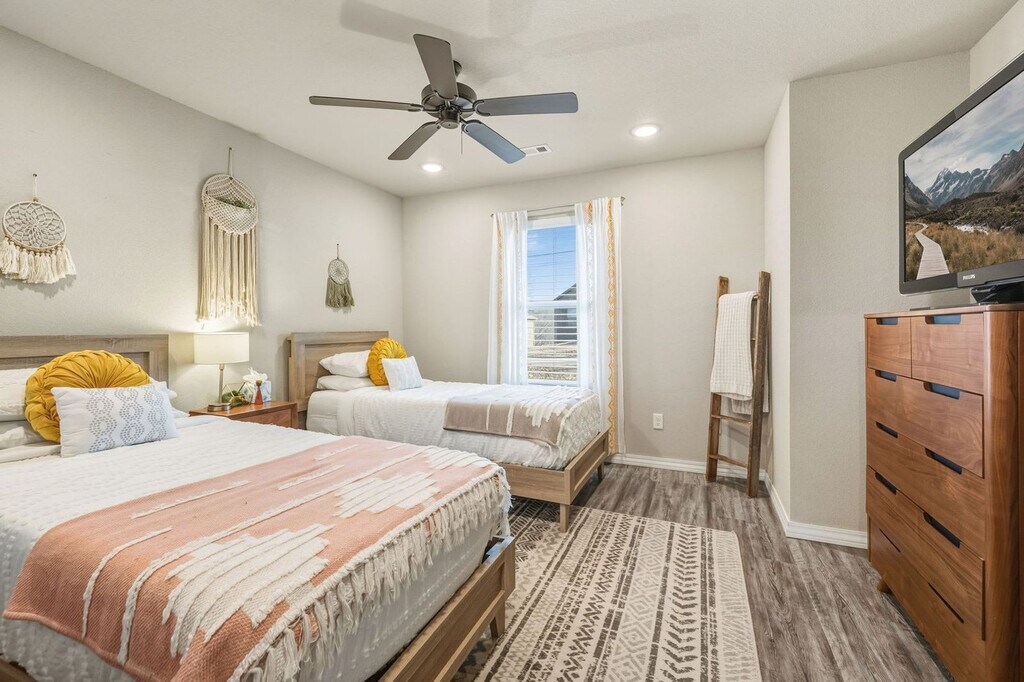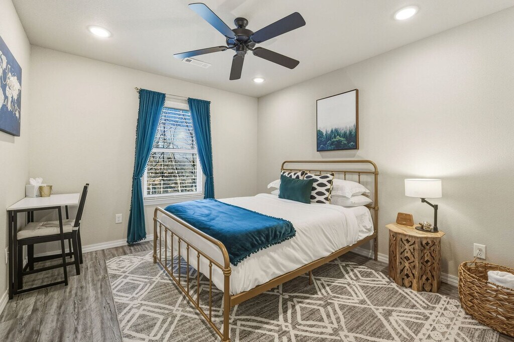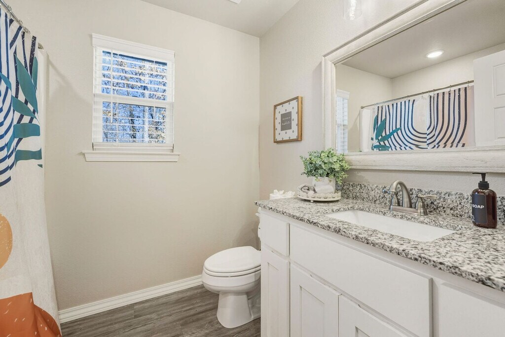 Feel at home in this Bella Vista home, the premier spot for experiencing Northwest Arkansas' natural beauty and bike trails. This home accommodates up to 6 guests with 3-bedrooms and 2-bathrooms. This home features a fully stocked kitchen, a cozy living room with a large Smart TV, a balcony with seating and a grill, and a washer and dryer for guest use. The garage is prepped for bikers with a bike wash station, bike racks, equipment, and trail maps. This property is pet-friendly with a fee of $90 per dog, with a maximum of 3 dogs. Located along the Lago Vista Trail, this home connects to Tunnel Vision and the famous Little Sugar MTB Trail. It's also conveniently located 1 block from the Lago Vista mountain biking trail, 1 mile to Lake Avalon, 1.7 miles from Tanyard Creek Nature Trail, 2.5 miles to Bella Vista Country Club, 3 miles to Mildred B. Cooper Memorial Chapel, 5 miles to Kingsdale Golf Course, and 11 miles to Downtown Bentonville. Parties or guest actions that result in disturbances, property damage, extensive extra cleaning, or smoking indoors will incur a fine of $1,000. Dogs discovered at the property without prior notice or cats discovered at the property will incur a fine of $400. Unauthorized checkout delays will incur a fine of $100 per hour. If you smoke in the home, you will be fined $1,000 plus the cost of any smoke remediation necessary. Per Bella Vista POA rules, renters must complete a guest card listing each guest’s name in order to access amenities. A $30 processing fee is associated with this pass, and it must be paid prior to your arrival. Please note that while the pass grants access to most recreational facilities, it is not an all-access free ticket. Amenities such as pools, lakes, fitness centers, tennis, golf, etc., still require payment of applicable usage fees. Additionally, the Bella Vista POA Member Services office is not open on weekends, and we will not be able to issue cards on those days. Quiet hours are observed from 10 PM to 10 AM. [SI]