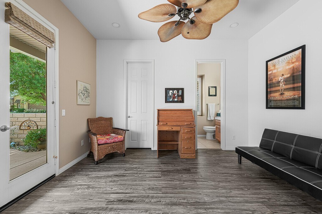 Don't miss this opportunity to lease a stunning,fully furnished home in the heart of Rancho Mirage Spa at Mission Shores. With sweeping panoramic views of the lake and surrounding mountains,this 3-bedroom,3-bathroom residence captures the essence of desert living from nearly every room. Available for both annual and seasonal leases,the home features an open-concept layout with ceramic tile flooring throughout,a spacious great room with a fireplace and wet bar,and an island kitchen that's fully equipped and perfect for entertaining. The primary suite offers a luxurious retreat,complete with a spa-style soaking tub and walk-in closet. A versatile guest bedroom with its own private entry currently functions as a flex spaceideal for a home office,fitness room,art studio,or private guest suite. Step outside to enjoy two patios designed with breathtaking sunset views over the tranquil lake for relaxation and entertaining,featuring a built-in gas BBQ,a spa and cozy firepit. Short term seasonal price: $6,700. (three month minimum).