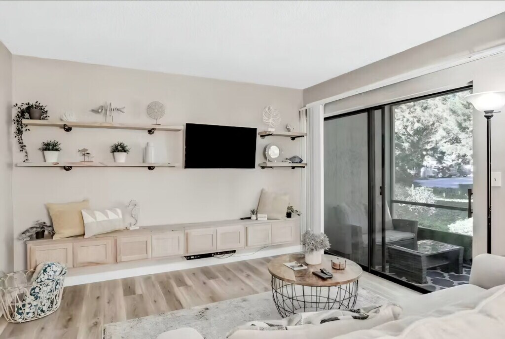 Beautiful 2beds 2baths condo, with a chef’s kitchen in the main living area with butcher block countertops and stainless steel appliances, a living space with custom floating built-ins and large sliding doors that lead to a private, screened-in lanai. With spa-like bathrooms, recessed LED lighting, and an in-unit laundry. The unit can be rented furnished or unfurnished to suit your needs. Located in the sought-after Conquistador Condominiums, residents enjoy premium amenities including multiple swimming pools, tennis and pickleball courts, a community pier on the Intracoastal Waterway, and a clubhouse with scenic walking trails. Its prime location places you just 5 minutes from shopping centers and a variety of restaurants, 15 minutes from historic Downtown St. Augustine and the beaches, and within close proximity to top-rated schools like W. Douglas Hartley Elementary.