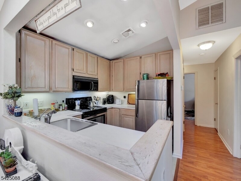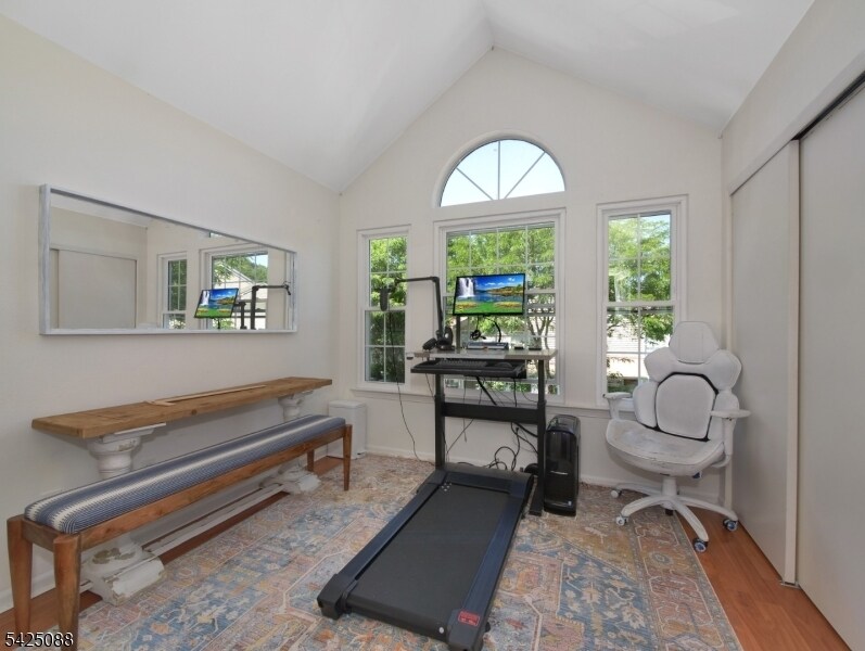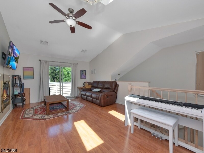 Bright and inviting 2-bedroom, 1-bath end-unit featuring a private 1-car garage. Enjoy a spacious dining and living area highlighted by a cozy gas fireplace and vaulted ceilings that extend into both the living room and primary bedroom. Sliding doors open to a porch with scenic mountain views. The home also includes an in-unit washer and dryer for added convenience. Residents of The Hills enjoy access to a community pool, fitness center, and tennis courts. Ideally located near restaurants, shopping, and major highways (Routes 78 and 287) for easy commuting.