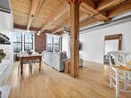 Experience style and sophistication in this stunning brick-and-beam home at the coveted Court Square Press. This classic industrial residence features an open-concept kitchen with sleek modern cabinetry,stone countertops,stainless steel appliances,and ample storage. Soaring ceilings and oversized windows fill the space with natural light,highlighting its distinctive character. The spacious living area allows for an office nook,dining table,and full seating setup. Previously a large walk-in closet,now thoughtfully converted into a bedroom with ample custom storage added in the foyer. The bathroom offers hexagonal tile flooring,subway-tiled walls,granite vanity,and a soaking tub. Hardwood floors throughout and in-unit washer/dryer. Enjoy full-service living with 24/7 concierge,fitness center,rooftop pool and terrace with sweeping views of the city,grilling stations,media room,and on-site management. Prime location near the Seaport and across from the Broadway T. MLS# 73445035
